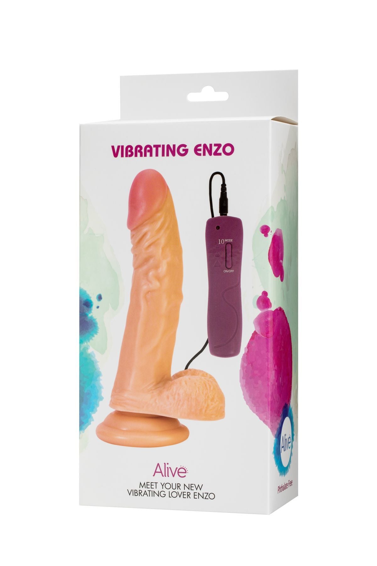 У нас ви можете придбати реалістичний фалоімітатор Alive Enzo. Він порадує вас середніми розмірами (загальна довжина 21 см, довжина, яка вводиться 15,5 см, максимальний діаметр 4,3 см) і ергономічною формою. Ця модель ідентична справжньому члену: злегка зігнутий стовбур, яскраво виражена рожева голівка, безліч складок і горбисті вінки. Для виготовлення фалоімітатора Alive Enzo використовується приємний на дотик PVC-матеріал. Фалоімітатор оснащений потужним і в той же час тихим моторчиком з 10 режимами вібрації. За рахунок того, що моторчик розташований посередині - вібрація рівномірно поширюється по всьому стовбуру.