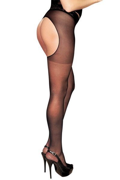 Колготки-панчохи з поясом Anne De Ales LOLA T2 Black, з доступом і відкритою попою