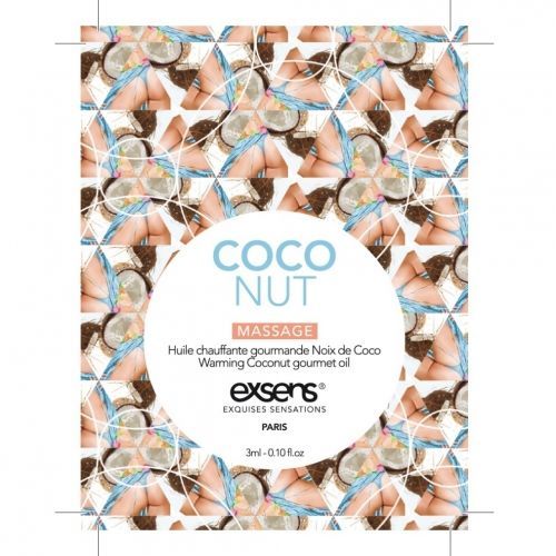 Якщо ви бажаєте привнести в свої інтимні стосунки трохи екзотичної пристрасті, рекомендуємо придбати пробник масажної олії Exsens Coconut 3 мл, їстівну і з ефектом розігріву. Олія відрізняється неймовірним кокосовим ароматом, солодким смаком без хімічної гіркоти і зігріваючим ефектом, який збільшується при контакті олії з вашим диханням.
