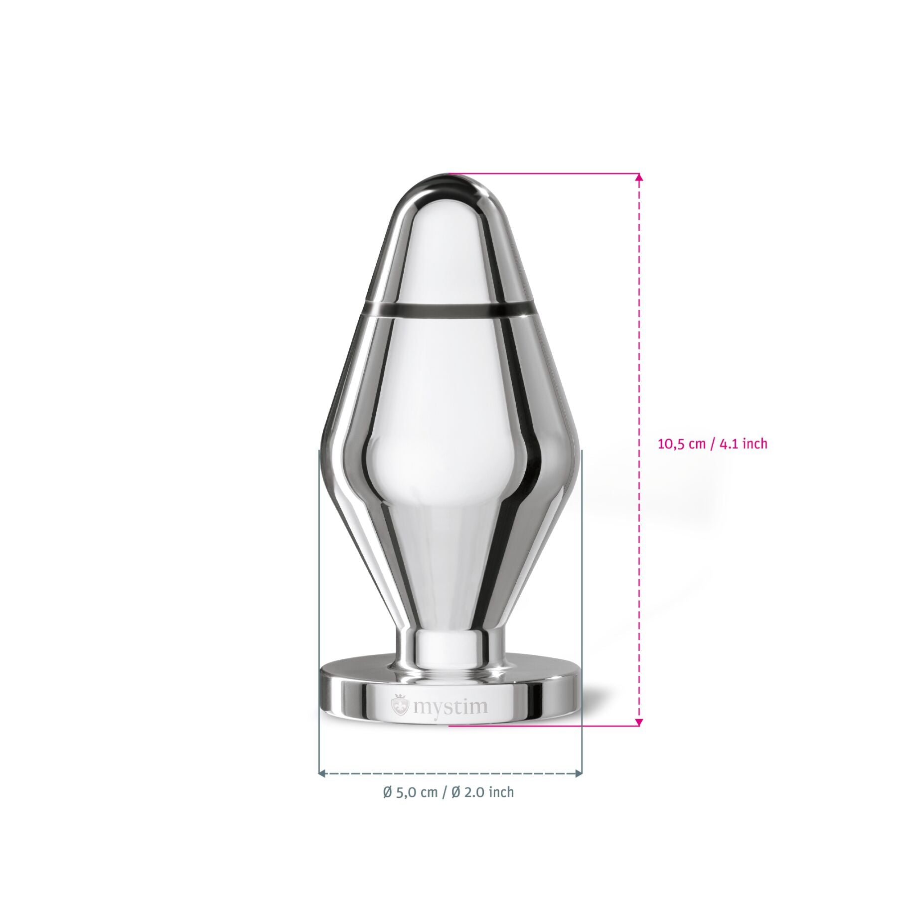 Відмінна знахідка для тих, хто хотів би вперше спробувати анальну електростимуляцію: гладка пробка конічної форми з м'яко заокругленим наконечником абсолютно комфортно входить всередину і, за рахунок розширеній частині, ви будете відчувати приємну заповненість. Залишається тільки підключити електроди (вам знадобитися спеціальний пристрій - Cluster Buster, Mystim Tension Lover або Mystim Pure Vibes) і насолоджуватися... І тільки від вас залежить, чи будуть це солодко-болісні години дражливого впливу, або бурхливий вибух відчуттів за лічені хвилини!