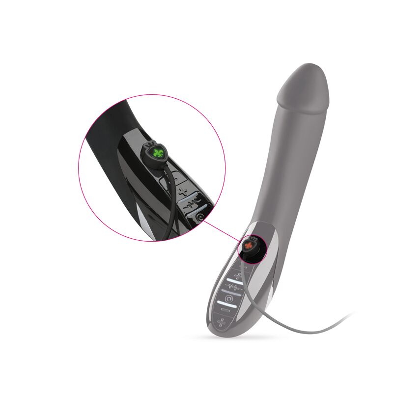 Почнемо з того, що вібратор дуже стильно виглядає: повністю чорний, ідеально гладкий, з красиво промальованою голівкою. Він покритий 100% медичним силіконом, безпечним і приємним для дотиків. Уздовж всього стовбура вібратора розміщена токопровідна поверхня, так що електростимуляція буде рівномірно розподілятися всередині, створюючи непередавані відчуття. Увімкнить її автономно або в комплексі з вібрацією - простір для фантазії просто величезний!