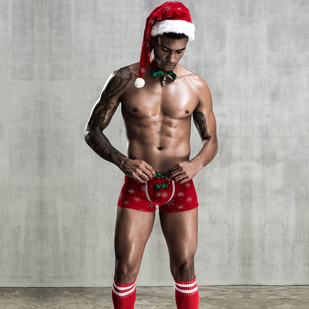 Прийшов час сказати: "кращий твій подарунок - це я!", І дозволити робити з собою все, що завгодно! Тим більше, що ви можете придбати новорічний чоловічий еротичний костюм Улюблений Санта і одразу перетворитися на справжній новорічний подарунок, милий і мужній одночасно. Труси-боксери, метелик, гетри та шапочка в традиційних червоно-зелених відтінках зроблять образ просто ідеальним.