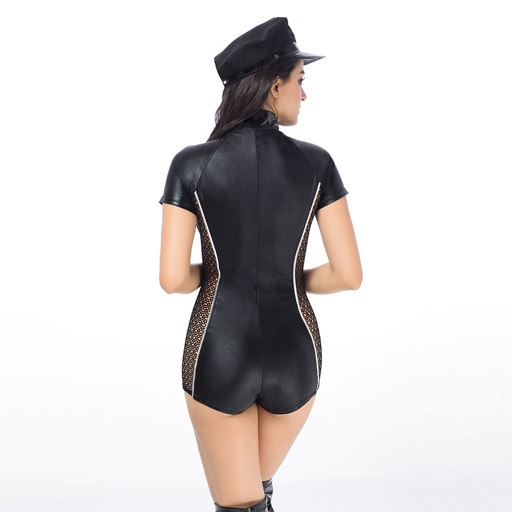 Блискавка на комбінезоні еротичного костюма поліцейської Сувора Лексі дозволяє його швидко зняти, а мереживні вставки з боків роблять його ще більш збудливим.