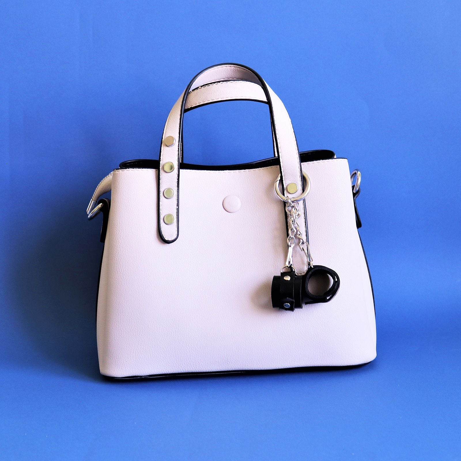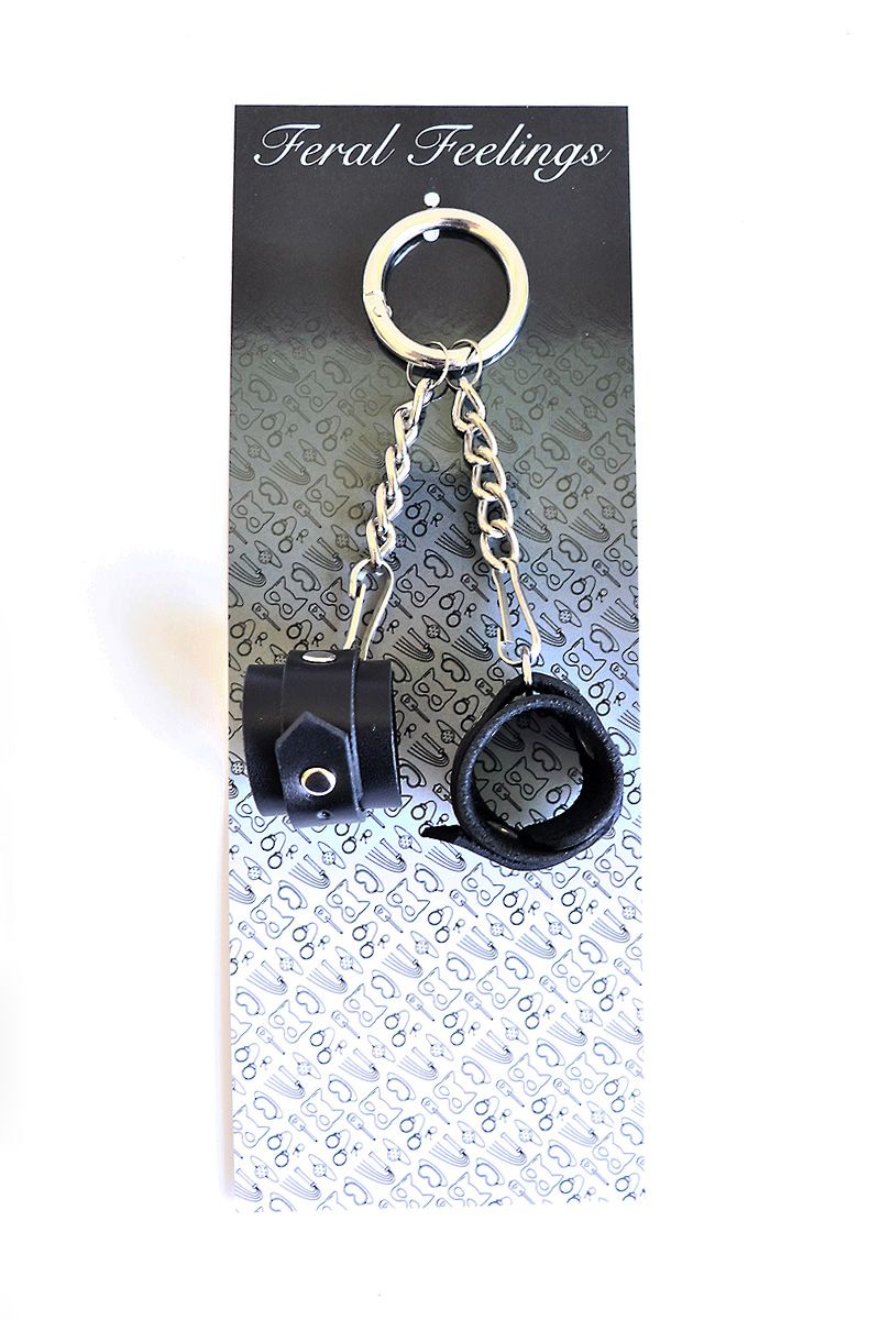 Міні-наручники з натуральної шкіри рослинного дублення, прикрашені хольнітенамі (заклепками). Кожен наручник кріпиться до основного кільця-карабіну ланцюжком і міні-карабіном, тому можна носити тільки один наручник, а другий - подарувати своєму партнеру у якості символу.