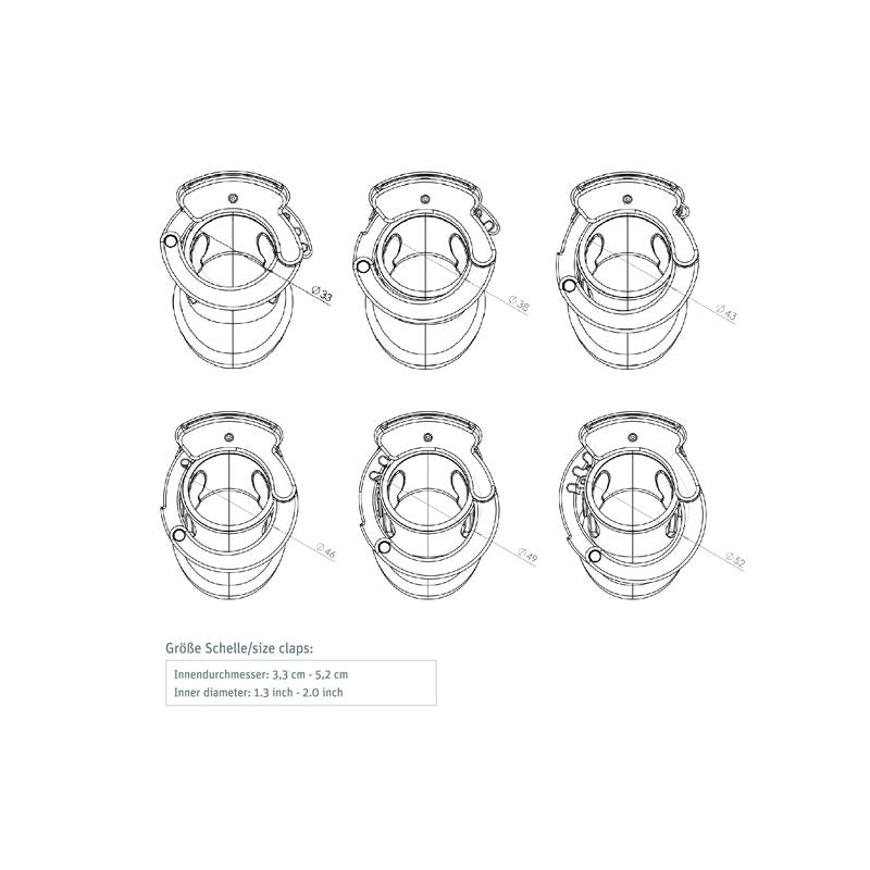 внутрішній діаметр з 6-ступінчастим регулюванням, від 33 до 52 мм;