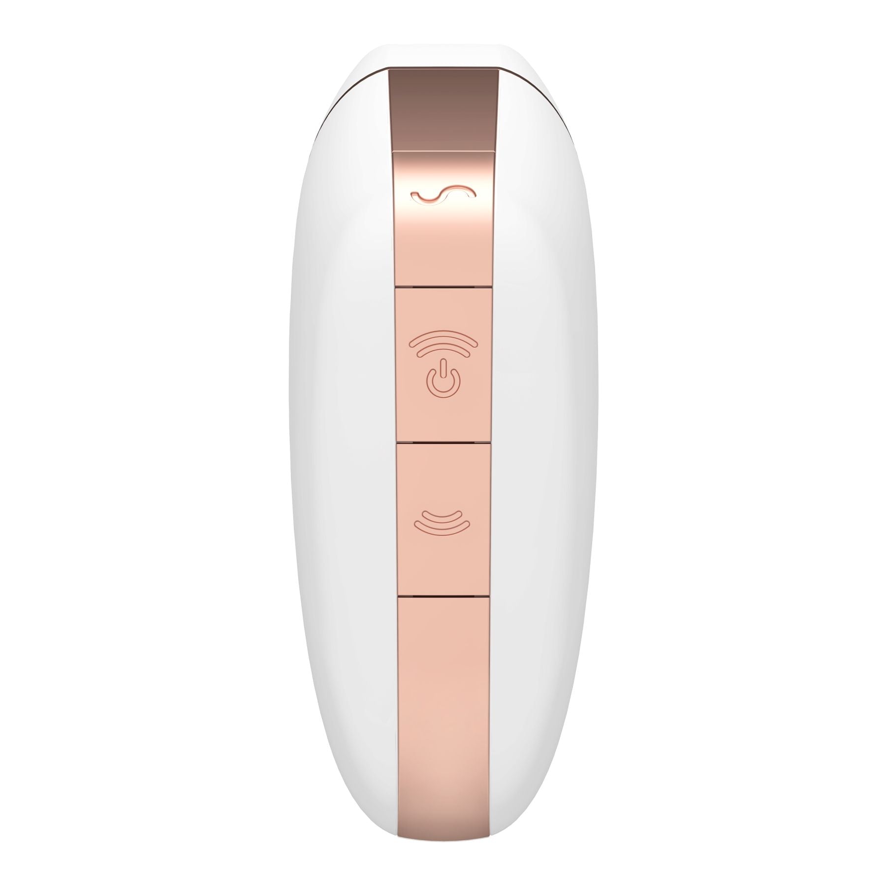 Стильне оформлення цього стимулятора відразу привертає увагу поєднанням м'якого силікону і металізованої обробки кольору рожевого золота. Satisfyer Love Triangle White — це: