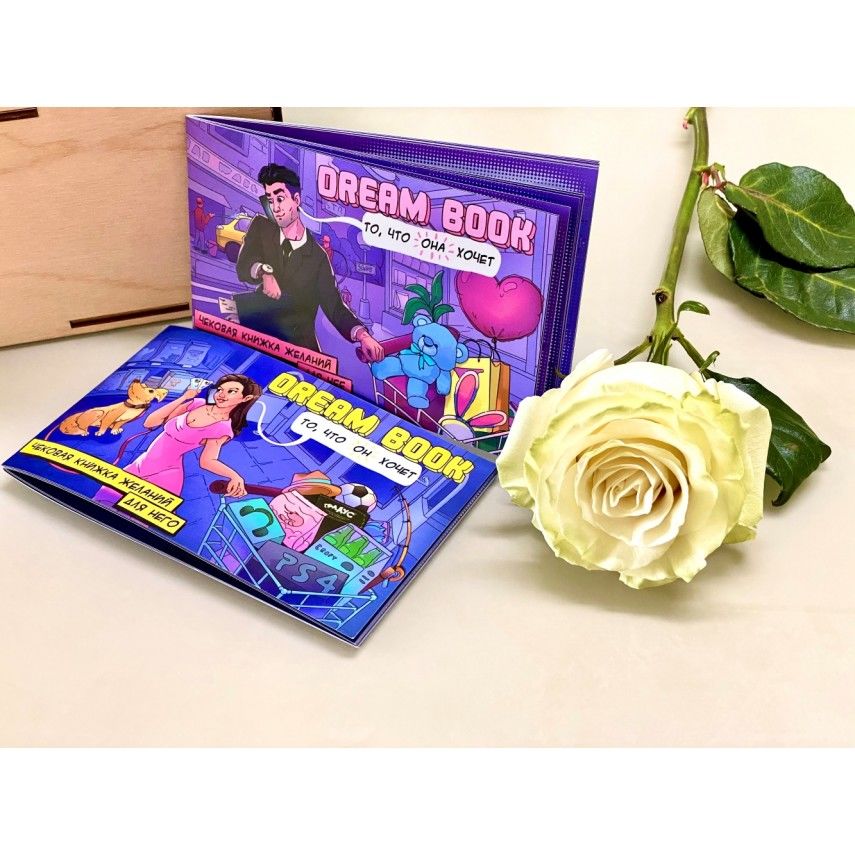 «DREAM BOOK» - це символ того, що Ви хочете зробити Вашу дівчину щасливішою та здійснити всі її бажання! Все, що необхідно партнерці, це обрати відповідне бажання, відірвати його чек та віддати партнеру для виконання. Термін виконання бажання узгоджується з партнером, а сам чек виконується тільки один раз. На корінці чека ставиться відмітка про те, що він погашений та дата виконання. Але головне - це Ваші спільні позитивні емоції!