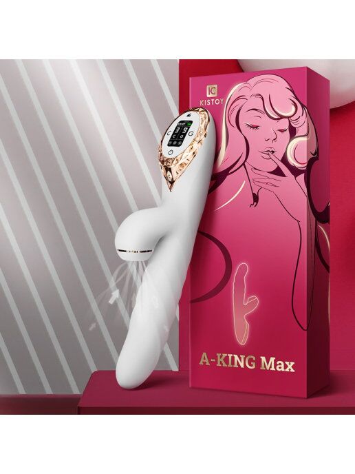 Вібратор-кролик з вакуумною стимуляцією і стовбуром, що обертається KISTOY A-King Max дозволяє комбінувати функції, вмикаючи тільки одну з них, дві або відразу три. Працюватиме до 90 хвилин, після чого його потрібно буде зарядити протягом 210 хвилин. У комплекті - атласний чохол для гігієнічного зберігання та USB-кабель для заряджання, а також докладна інструкція (у тому числі російською мовою).