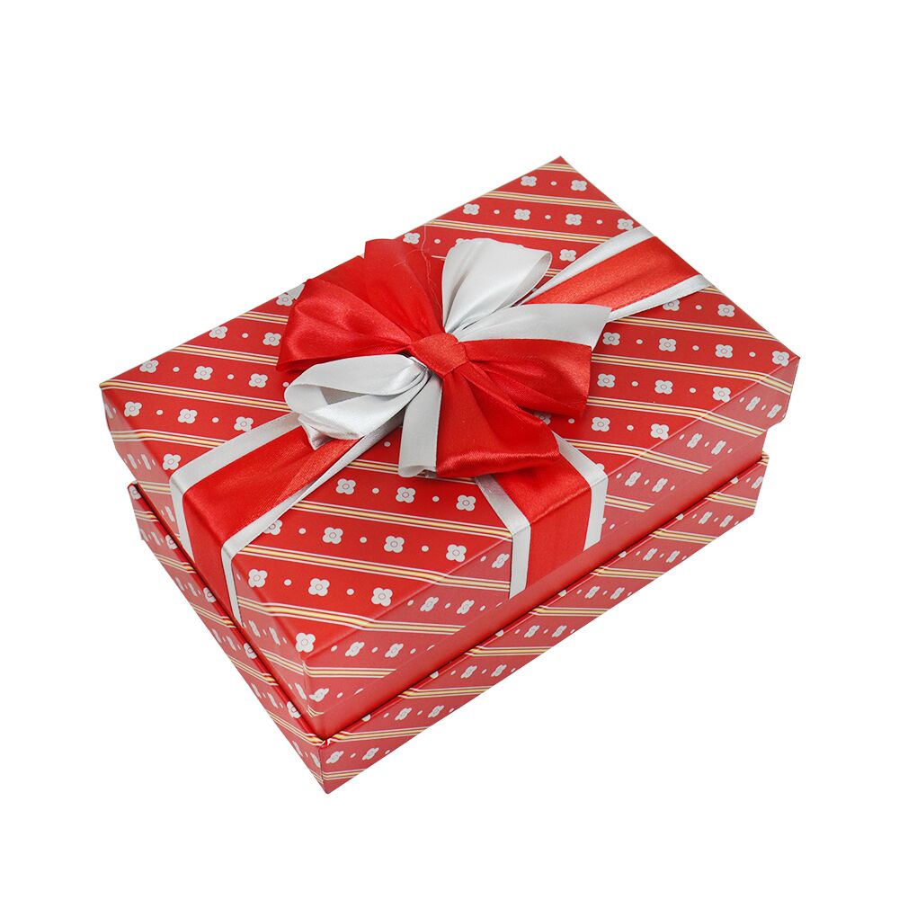 Подарункова коробка з бантом червоно-біла, S - 20,5 х13, 5х9, 5 см