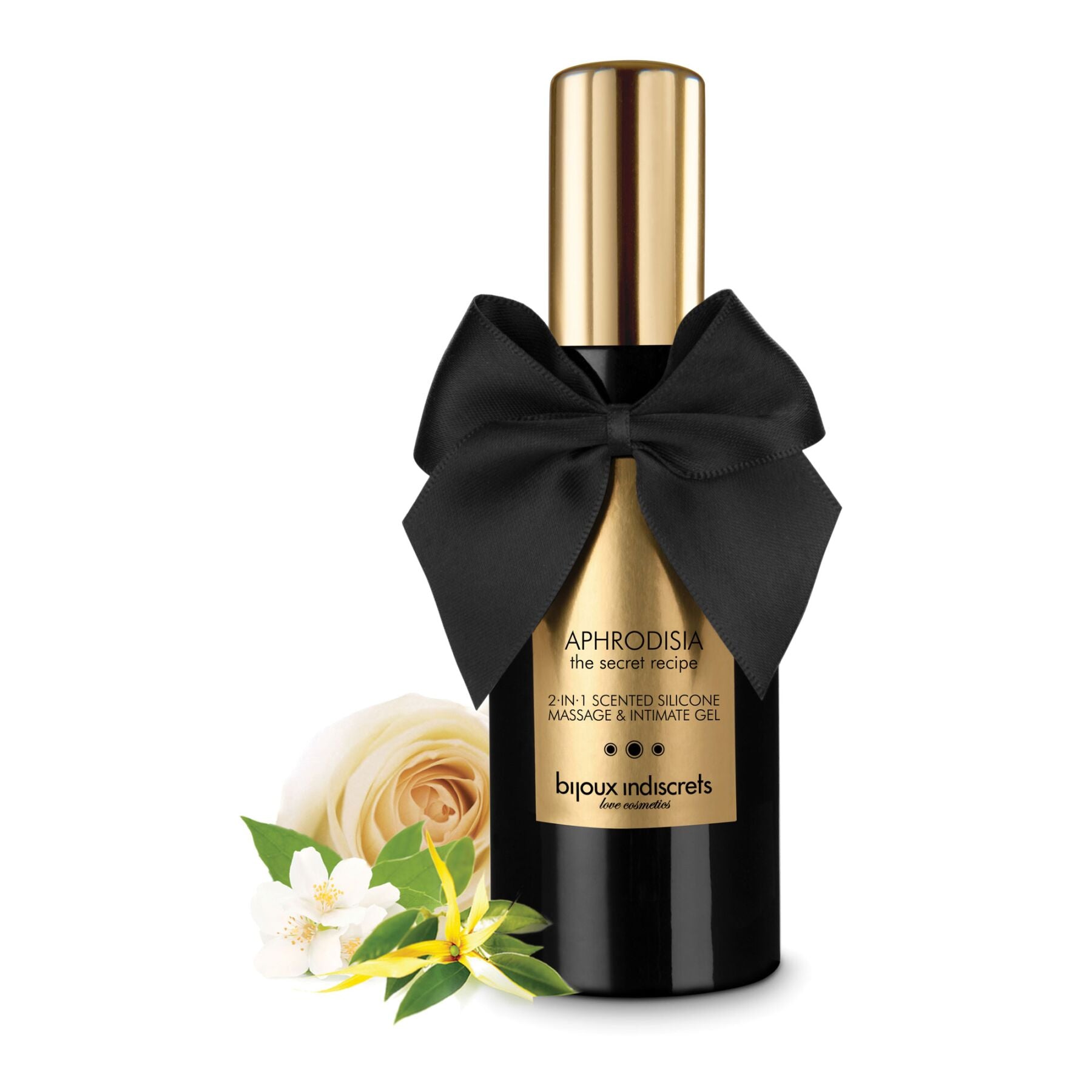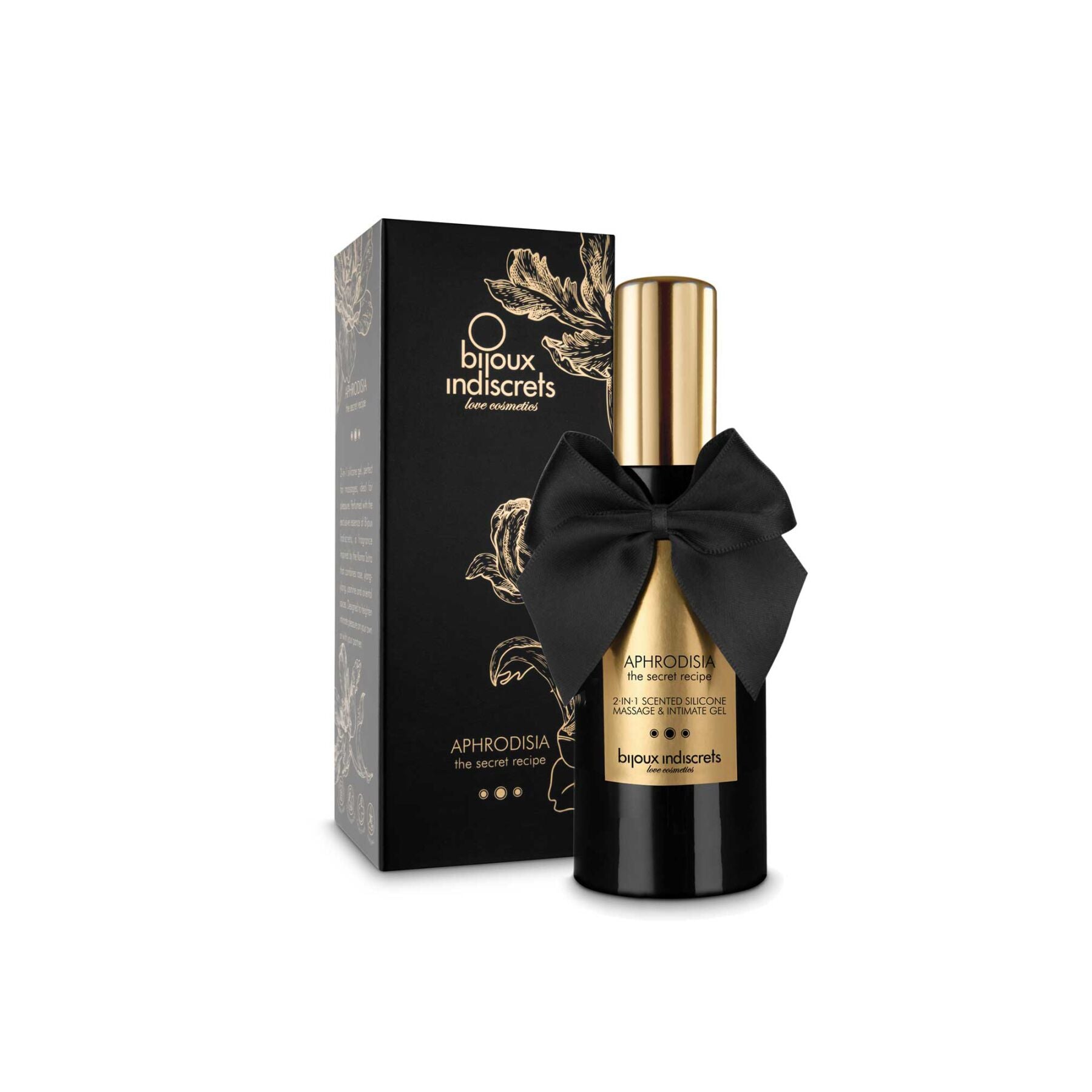 Яскравий букет лубриканта на силіконовій основі 2в1 Bijoux Indiscrets Aphrodisia з чуттєвого іланг-ілангу, солодкої троянди, млосного жасмину та ноток пряної деревини створюють збудливо-чуттєву гаму. Силіконова основа гелю має тривалу дію і не розчиняється у воді, що дає можливість використовувати його в душі. Порівнюючи зі звичайною масажною олією або інтимним лубрикантом, густий силіконовий гель витрачається економніше в кілька разів. Під час нагрівання на шкірі гель розкриває весь свій ароматний нотний ряд, створюючи приголомшливу атмосферу близькості з вашим партнером. У складі лубриканта лише натуральні інгредієнти, тому він не спричиняє подразнень, а аромат-унісекс підійде як жінкам, так і чоловікам. Можна використовувати з латексними презервативами, але не можна використовувати із секс-іграшками із силікону. Окрім того, вишукане пакування гелю робить його стильним та оригінальним подарунком.