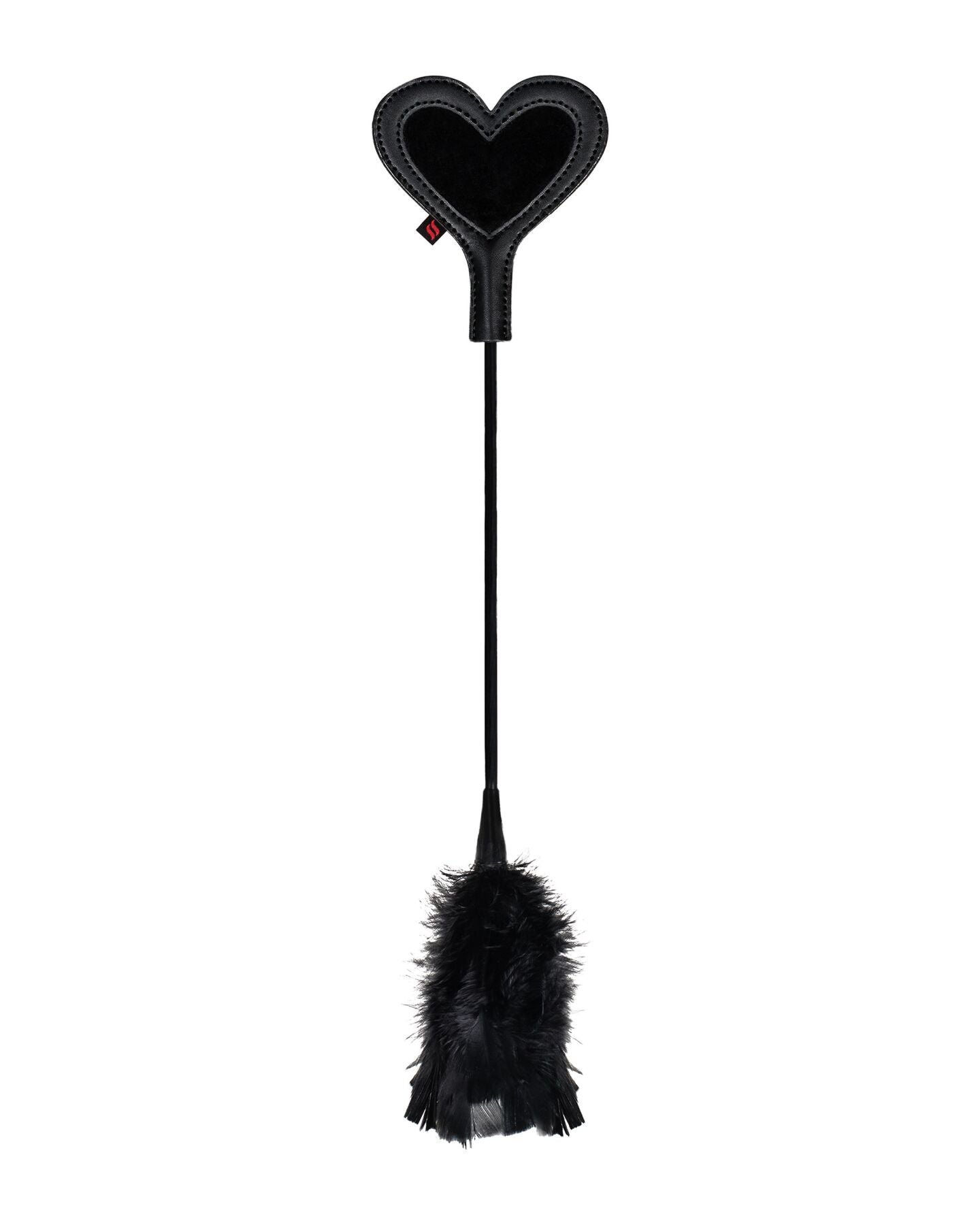 Ляскалка-сердечко з пір’ячком Obsessive A704 Crop & Tickler двостороння: один кінець зроблений у вигляді сердечка з екошкіри з м’яким матеріалом усередині, а інший — ніжне пір’ячко, яке дуже делікатно пестить шкіру.