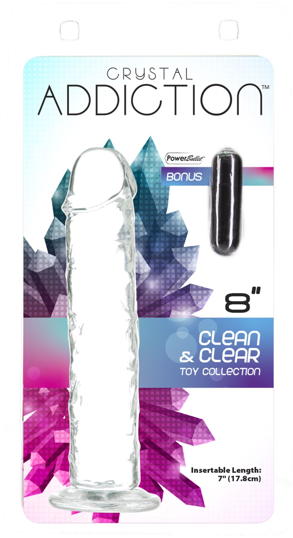 Прозорий фалоімітатор ADDICTION Vertical Dong 8″, присоска, діаметр 3,8 см, віброкуля в подарунок