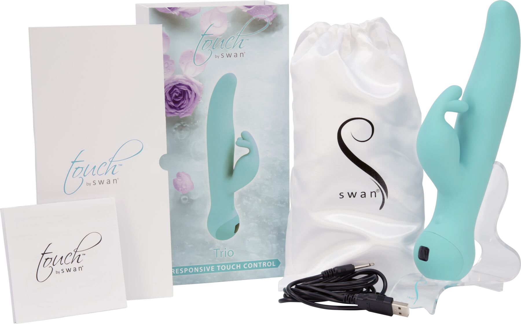 Вібратор-кролик Touch by SWAN - Trio Teal, сенсорне керування, ротація, діаметр 3,8 см