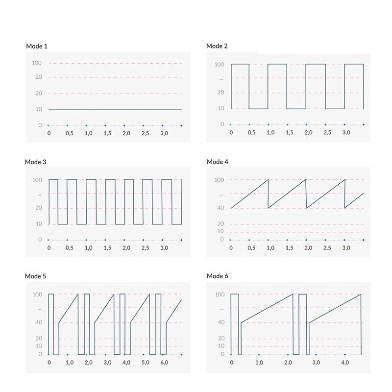 по 5 режимів інтенсивності для кожного режиму вібрації, тому ви можете комбінувати налаштування за своїм бажанням від ніжних до суперсильних;
