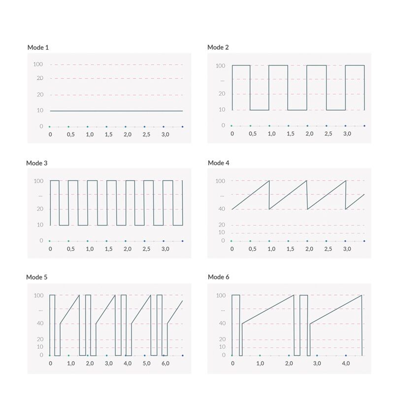 по 5 рівнів інтенсивності для кожного режиму: починайте з ніжного впливу та переходьте до потужної стимуляції для фантастичних відчуттів;
