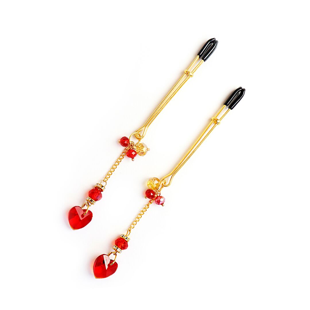 Затискачі для сосків Art of Sex – Crystal Heart Red, золото