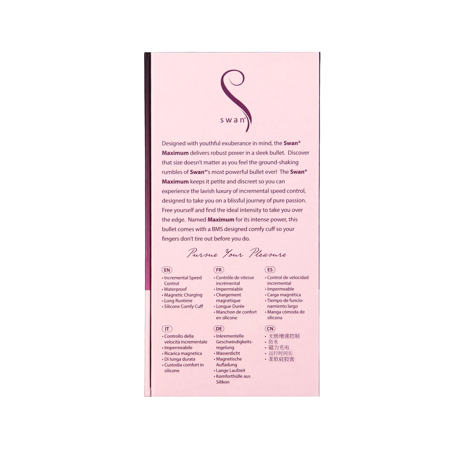 Віброкуля Swan Maximum — це вишукане джерело фізичного та естетичного задоволення, яке завжди буде під рукою. З цією кулею можна провести чудовий вечір наодинці з собою або додати чуттєвості побаченню. Дійте, як підкаже фантазія, а віброкуля Swan Maximum не підведе!