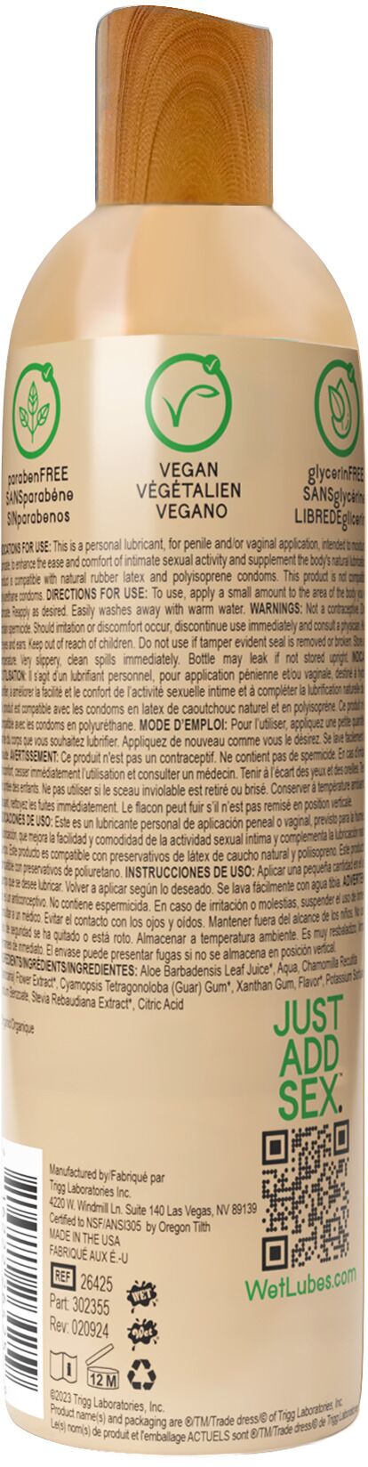 Пропонуємо купити лубрикант на водній основі Wet Naturally — максимально натуральну змазку (органічний склад на 95 %) з доглядальними рослинними екстрактами у складі. Лубрикант має збалансований pH, додатково зволожує та омолоджує найінтимніші зони. Веганська формула цього лубриканту робить його максимально безпечним та універсальним. Не містить гліцерину та парабенів, сумісний з іграшками та презервативами.