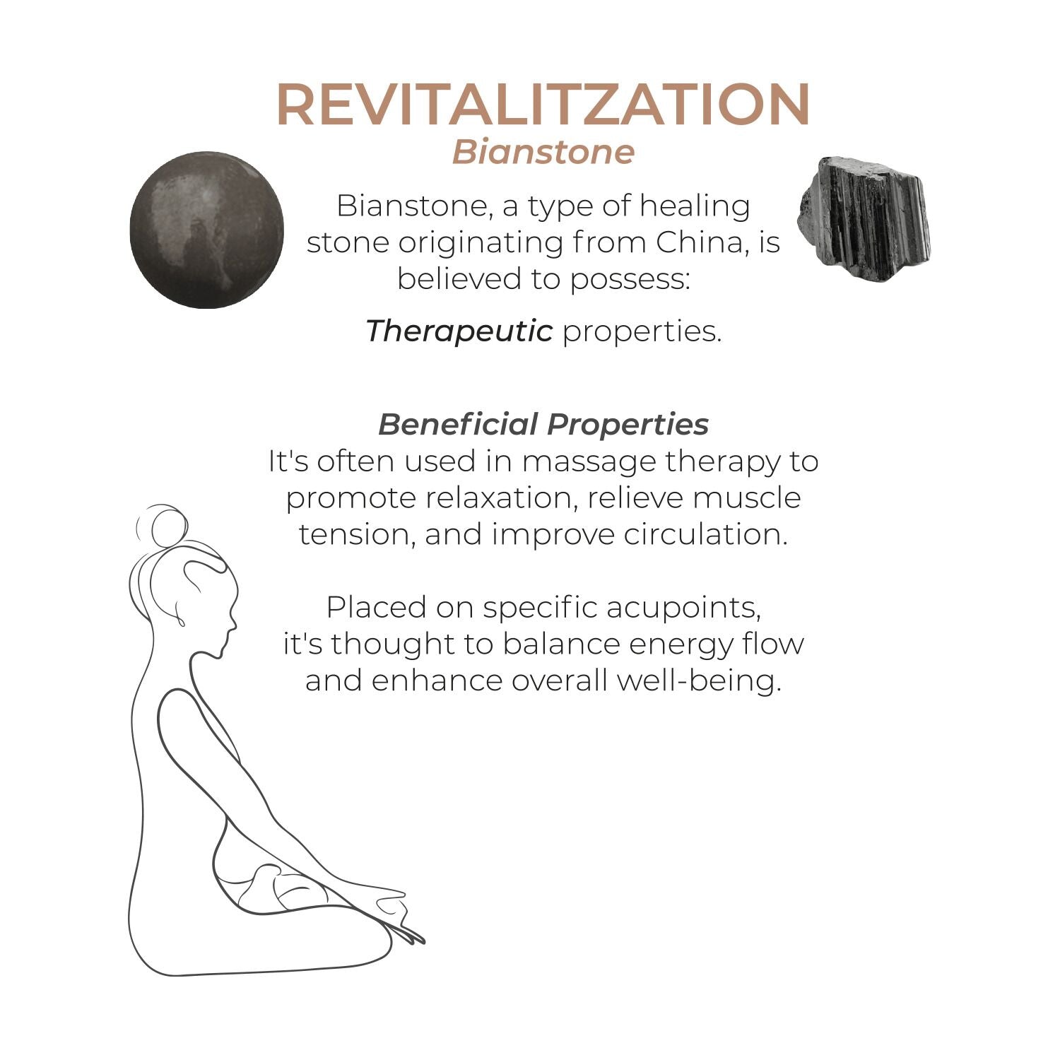Камінь Бянь — глибокого чорного кольору, відповідає за кровообіг. Цей китайський камінь використовується в масажній терапії для релаксації, зняття м’язового напруження та поліпшення кровообігу. Маса 38 г.