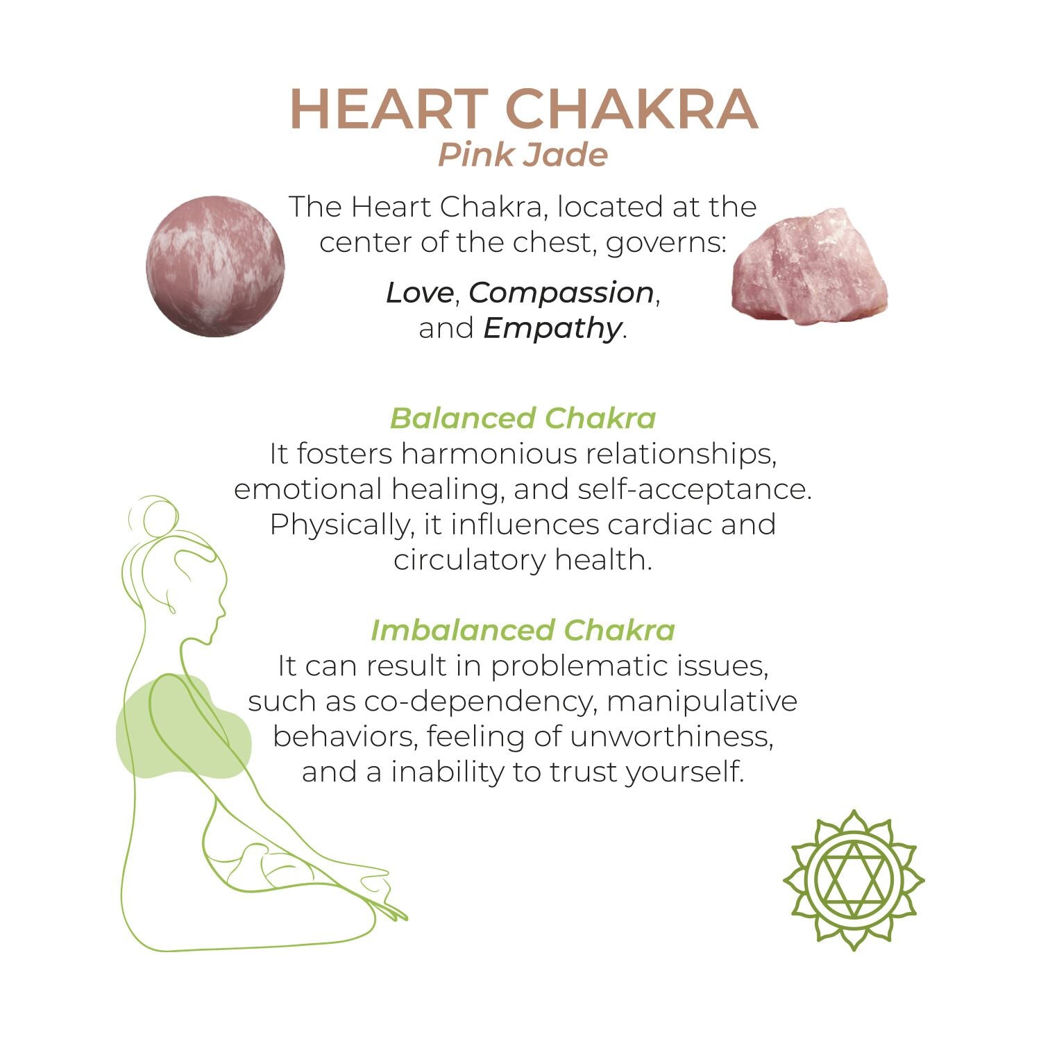 Рожевий нефрит — ніжно-рожевий, з легкими прожилками. Відповідає за серцеву чакру, що керує любов’ю, співчуттям та співпереживанням. Сприяє відчуттю внутрішнього спокою. Маса 38 г.