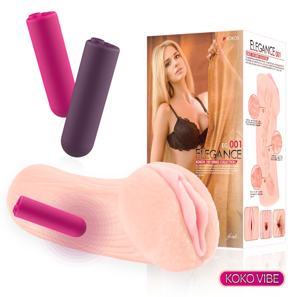 Пропонуємо купити реалістичний мастурбатор Kokos Elegance 001 Vibe. Серія Elegance вирізняється оптимальним поєднанням якості та доступної ціни. Двошаровий еластомер, з якого виготовлений мастурбатор, дуже приємний на дотик і майже не відрізняється від справжньої шкіри.