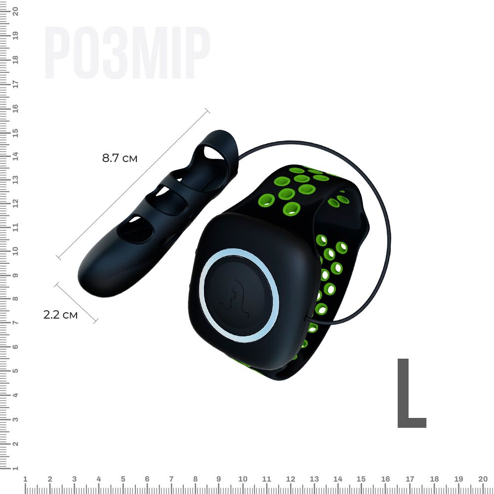 Пульт керування та зарядка знаходяться на спеціальному браслеті, який елегантно кріпиться на зап'ясті і з'єднується з самою насадкою силіконовим шнурком, що забезпечує фіксацію насадки на пальці. Завдяки цьому нам вдалося максимально зменшити розмір самої насадки, що робить її більш зручною і маневреною. Вся вібрація сконцентрована на кінчику пальця. Всього 10 режимів вібрації, який ви переключаєте, натискаючи кнопку на браслеті.