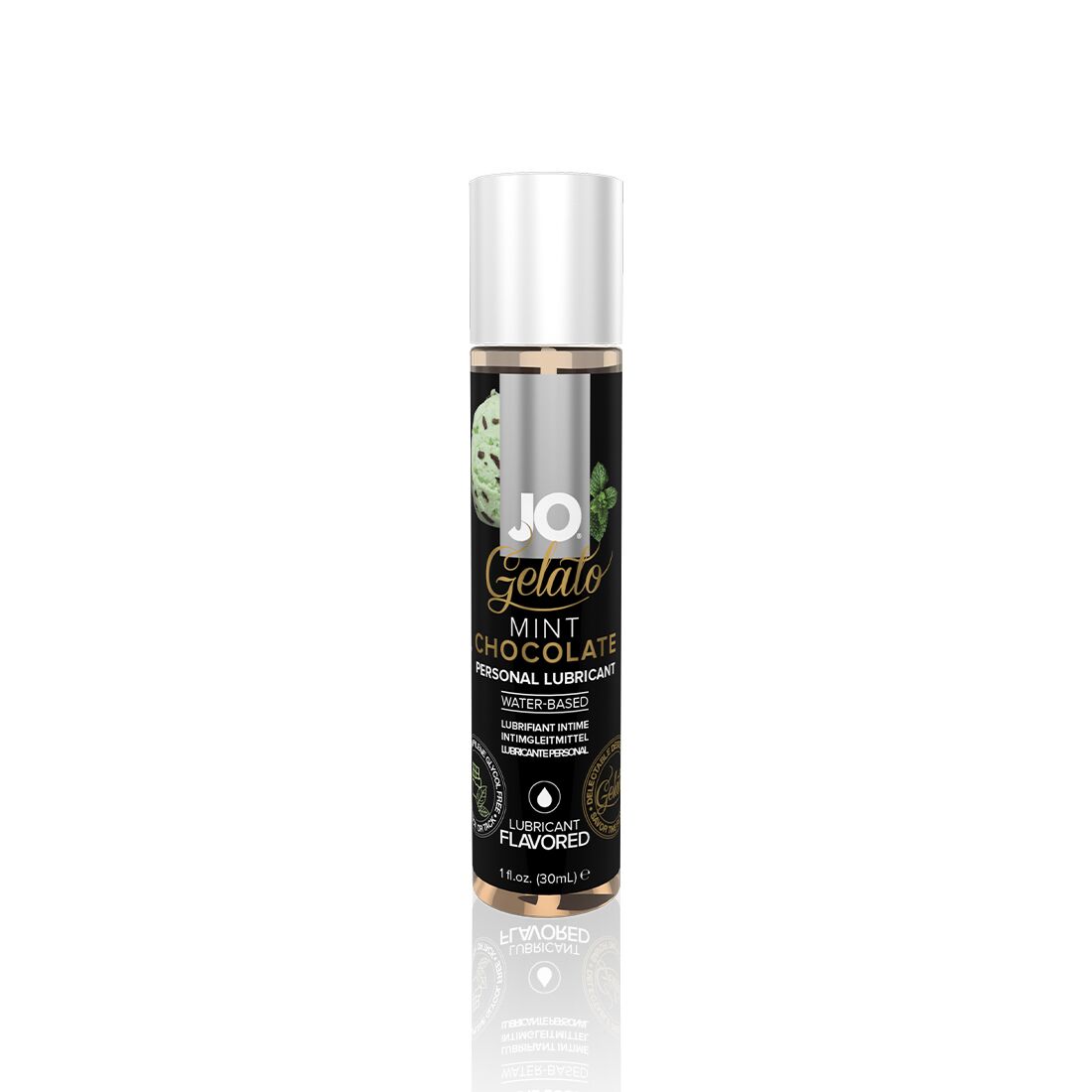 Лубрикант на водній основі JO GELATO MINT CHOCOLATE (30 мл) — м’ятний шоколад із колекції інтимних смакових лубрикантів, створених спеціально для яскравої прелюдії та комфортної близькості. Виготовлені з використанням гліцерину на рослинній основі та інших високоякісних інгредієнтів, засоби цієї колекції забезпечують приємне та тривале ковзання. У формулі цих смакових лубрикантів немає цукру, парабенів та пропіленгліколю — для м’якшого ковзання. Без липкості та післясмаку.