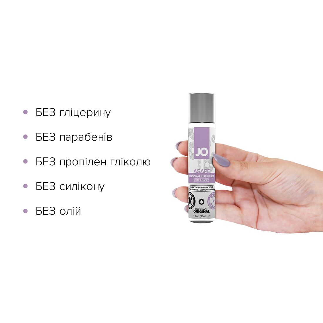 Змазка на водній основі JO AGAPE — ORIGINAL (30 мл) без гліцерину, гліколю та парабенів