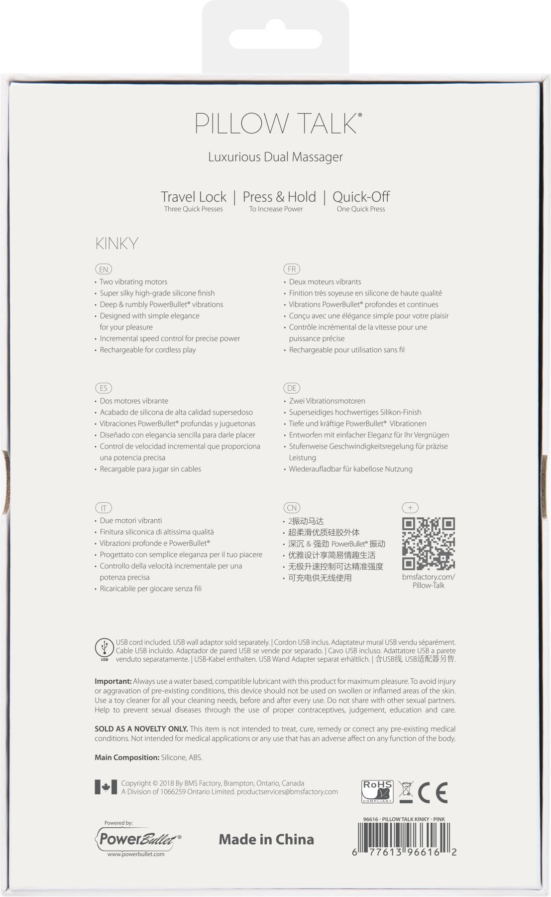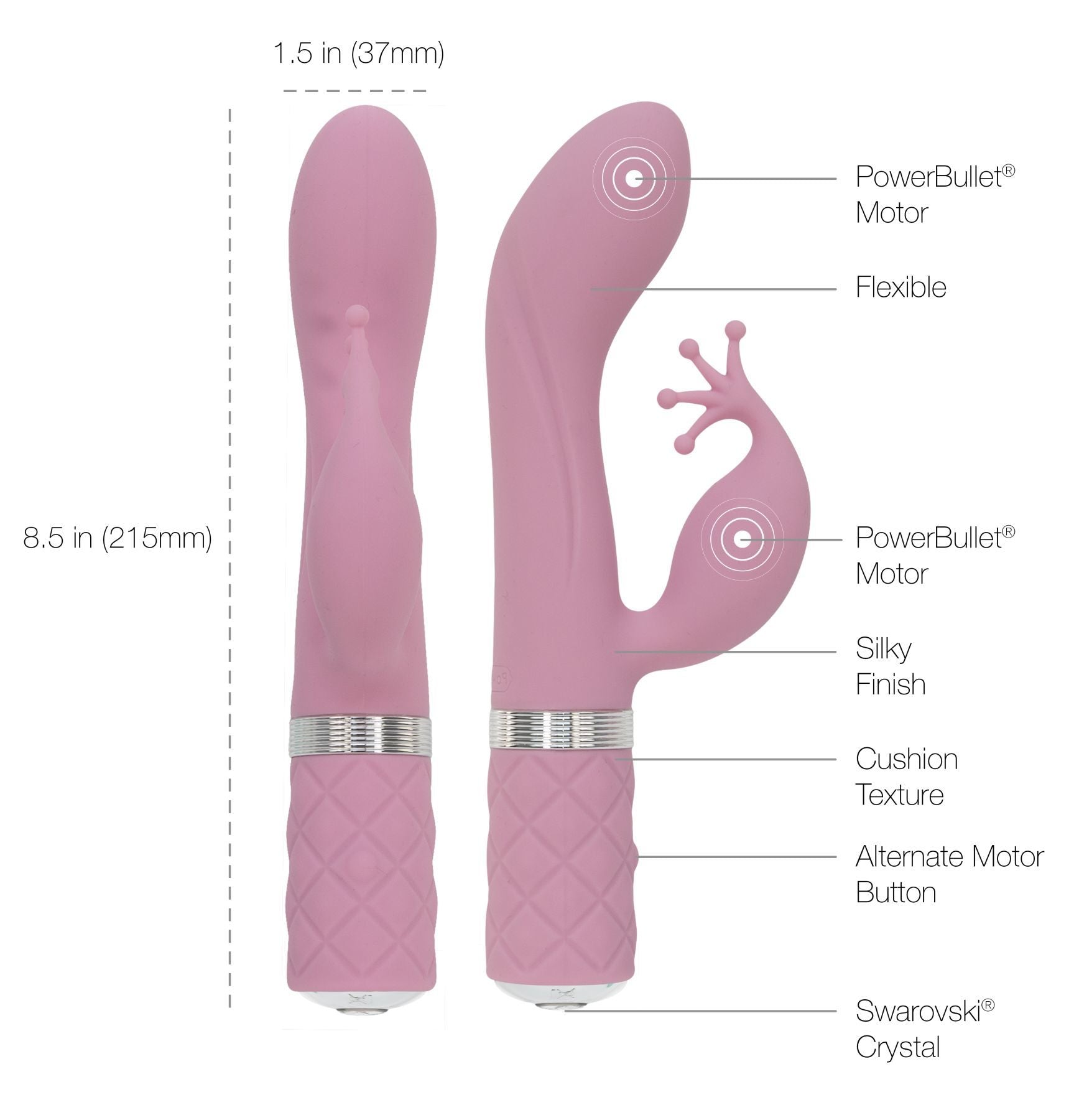 Пропонуємо купити розкішний вібратор PILLOW TALK - Kinky Pink - абсолютно надзвичайну модель з двома моторами, яка здатна здивувати навіть самих просунутих цінительок вібраторів. Короноподобний гнучкий відросток буквально охопить ваш клітор ласками з усіх боків, а загнутий кінець вводиться частини буде ніжно (або інтенсивно - як ви захочете!) Стимулювати точку G. І довершує розкішну картину справжній кристал Swarovski, розташований на рукоятці вібратора.