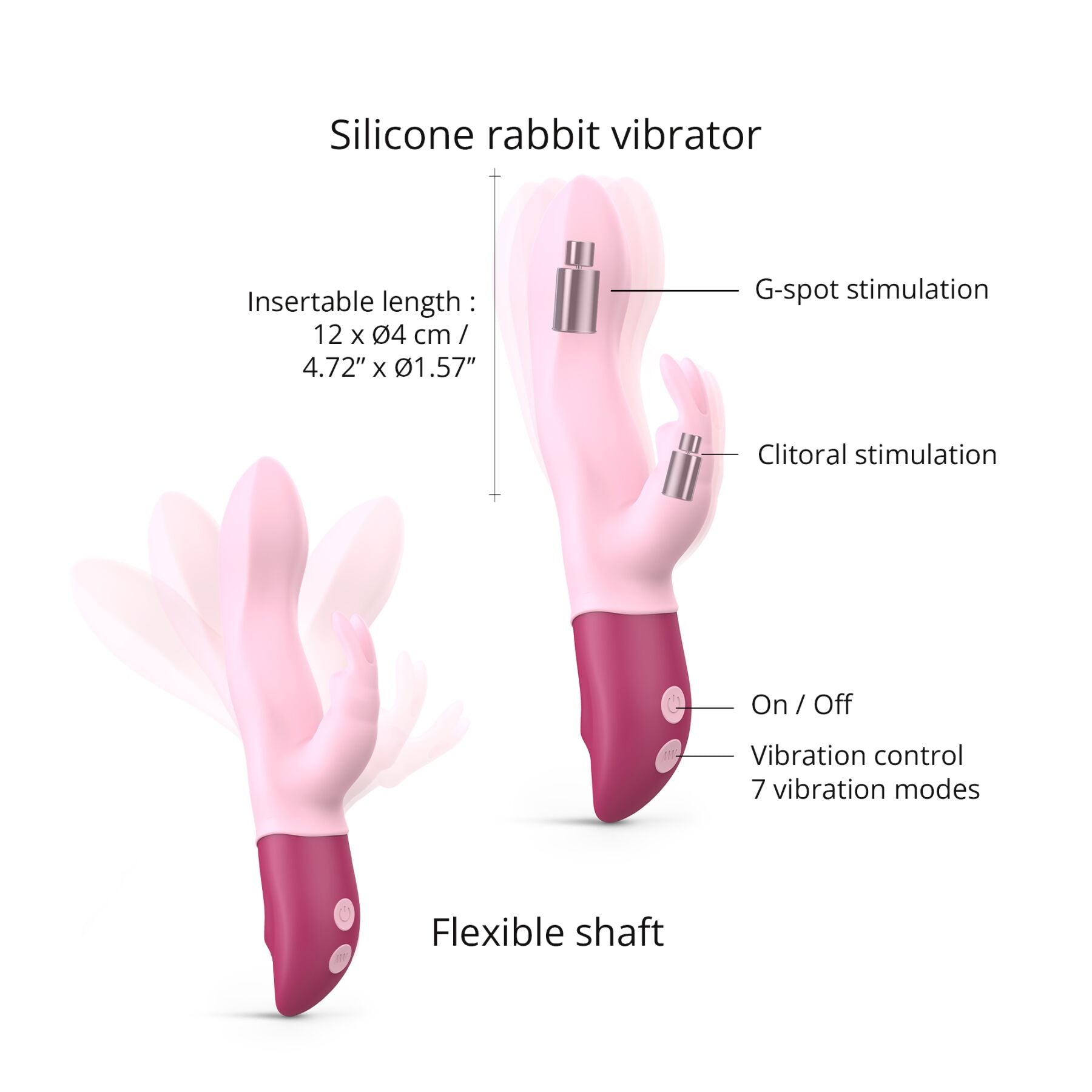 2 мотори: один в стовбурі для вагінальної стимуляції і впливу на точку G, і один у відростку для неймовірної стимуляції клітора відразу двома гнучкими вушками;