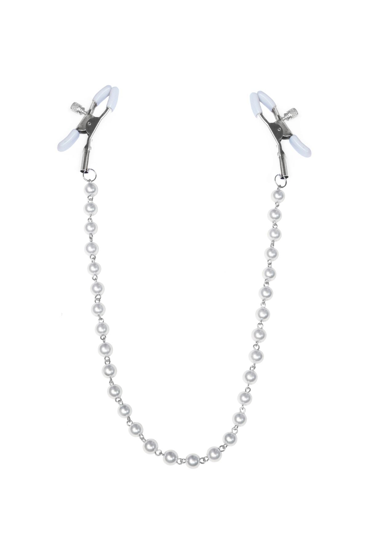 Затискачі для сосків з перлинами Feral Feelings - Nipple clamps Pearls, срібло/білий