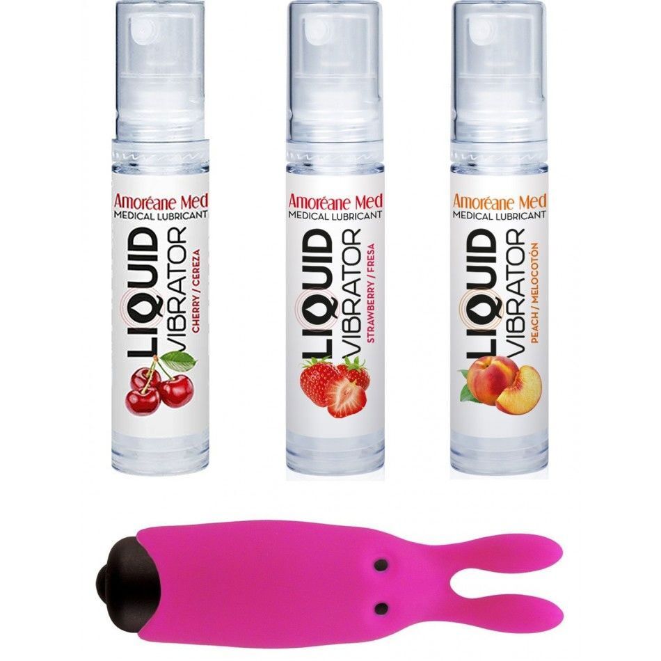 Набір з 3-х смаків стимулювального лубриканта Amoreane Med (3х10мл) та віброкулі Adrien Lastic Pink