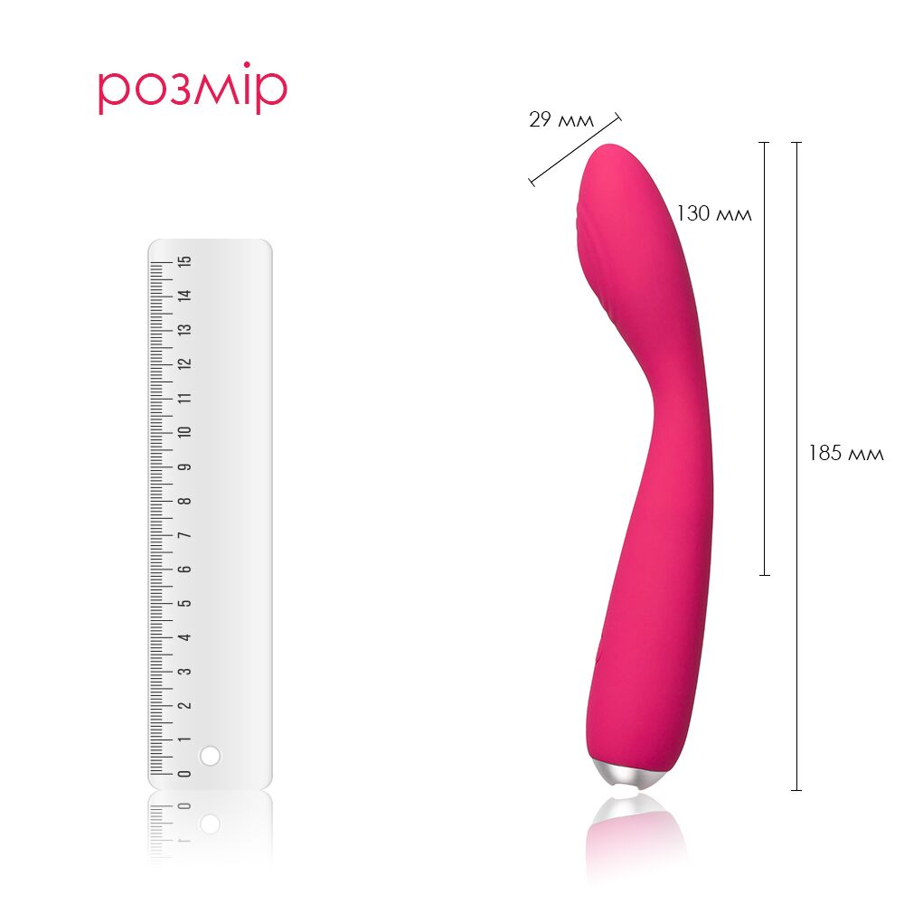 Розмір продукту: загальна довжина 185 мм; максимальний діаметр ввідної частини 29 мм; ввідна довжина 130 мм; найтонше місце 15 мм; діаметр основи 30 мм.
