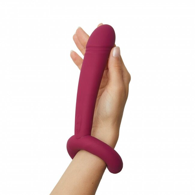 - Закріпивши кільце на пенісі, ручку можна зігнути для подвійного проникнення. Вібруватимуть всі частини іграшки, то ж подвійне задоволення отримають обидва учасники процесу!