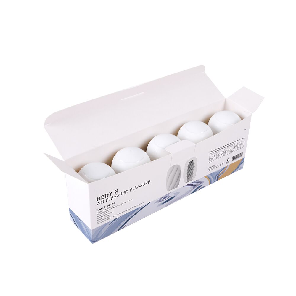 Відразу 5 унікальних мастурбаторів в одному наборі — це практично невичерпне джерело насолоди! Якщо ви шукаєте нові враження у зручному форматі, рекомендуємо купити набір яєць мастурбаторів Svakom Hedy X Experience. Пружна спіраль усередині яйця стимулюватиме кожен міліметр пеніса, приводячи вас до вершин задоволення. Яйце можна використовувати й навиворіт, якщо хочеться ніжнішого впливу: у кожного мастурбатора унікальна і внутрішня, і зовнішня сторона. З кожним яйцем у комплекті лубрикант!
