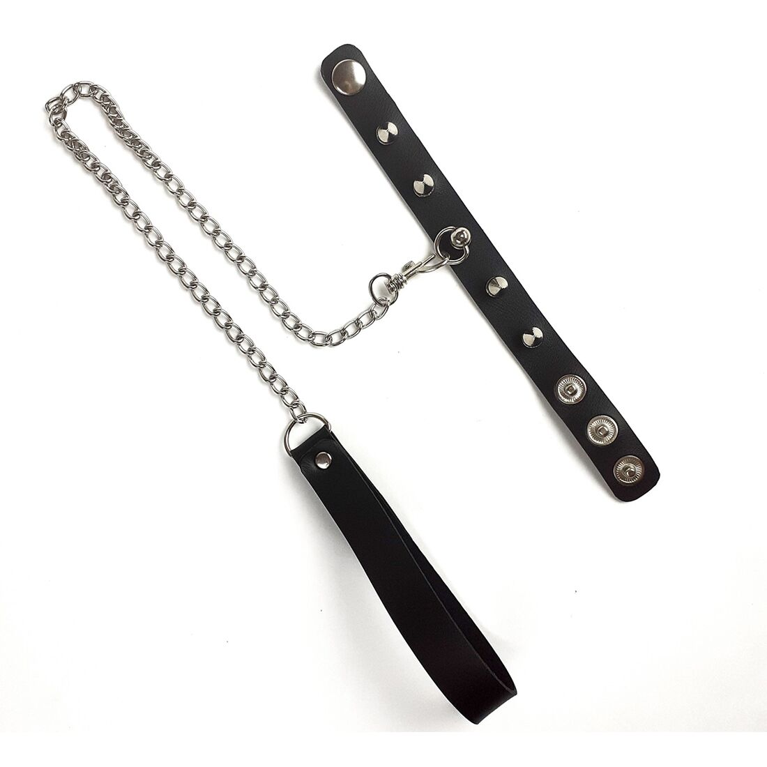 Кільце для пеніса прикрашено шипами, це кільце не дасть можливість нікому торкатися до вашої власності. Поводок з металу оснащений шкіряною ручкою, щоб регулярно вигулювати партнера по дому було зручно, в першу чергу, для вас.