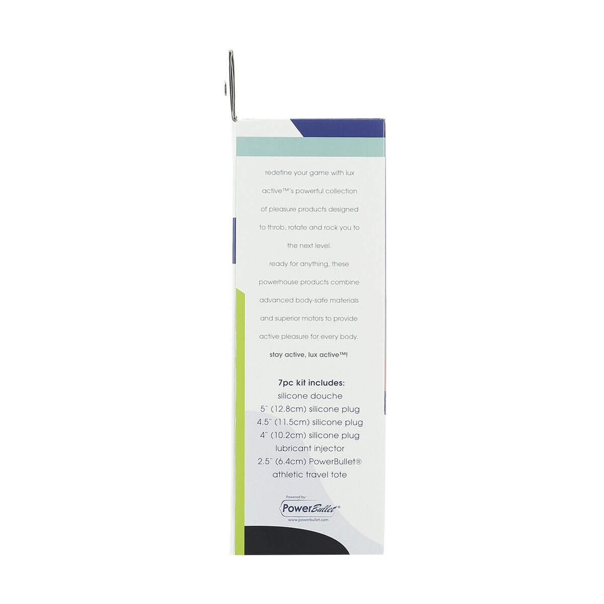 Набір із 7 елементів: дозатор для лубриканта, спринцівка, 3 анальних пробки різного розміру, віброкуля, місткий чохол для всіх деталей.