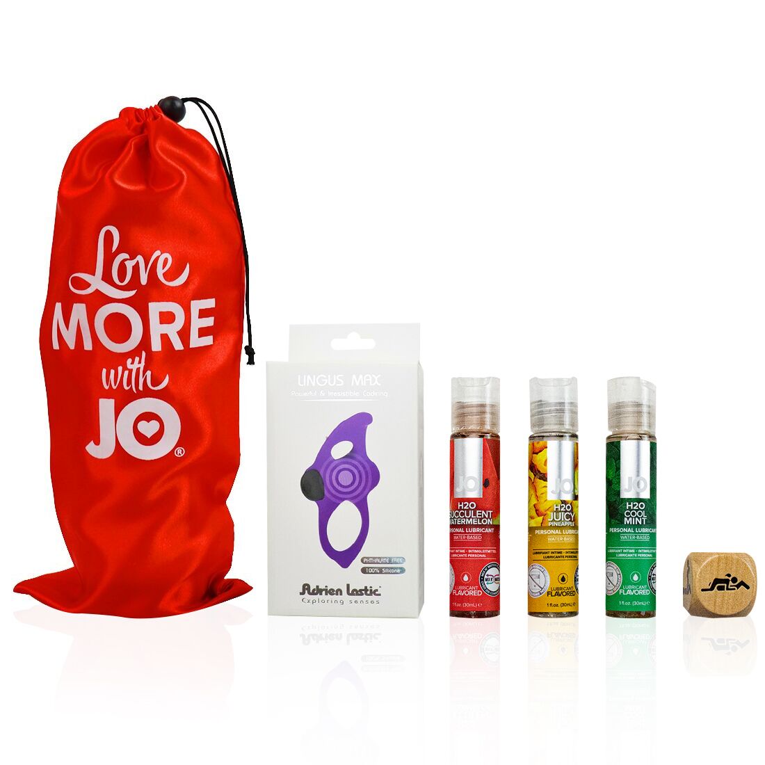 Зупиняючи вибір на наших наборах, ви заощаджуєте не тільки час, але й отримуєте комплект із секс-іграшок та змазок на 15 % дешевше, ніж вартість цих же товарів окремо. Наші набори будуть радувати вас і вашого партнера не один вечір, перетворюючи любовну гру на незабутню пригоду. Упакований у фірмовий атласний мішечок червоного кольору System JO, набір стане шикарним подарунком з будь-якого приводу.