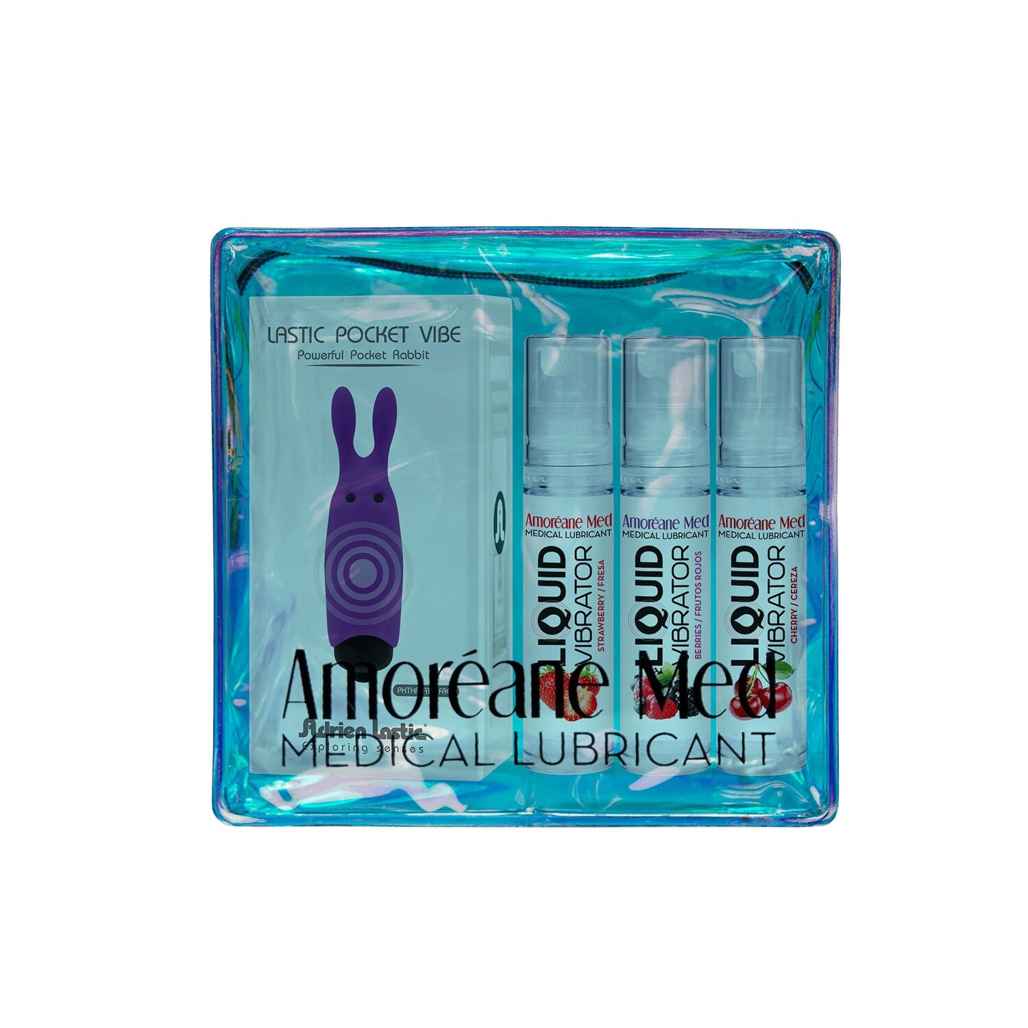 Набір з 3-х смаків стимулювального лубриканта Amoreane Med (3х10мл) і віброкулі Adrien Lastic Purple