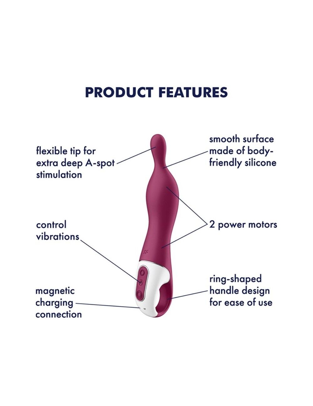 Унікальний дизайн цього вібратора розроблений для стимуляції точки А — скупчення нервових закінчень глибоко на передній стінці піхви. Вплив на неї призводить до швидкого збудження та особливо інтенсивних оргазмів! Вібратор для точки А Satisfyer A-Mazing 1 — це: