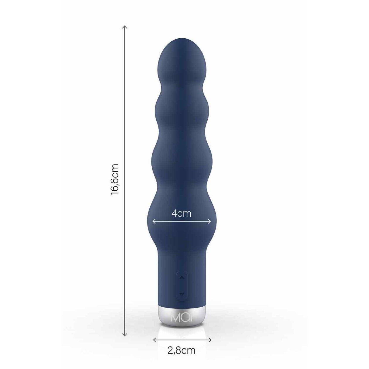 Пропонуємо купити вібратор MAI BUBBLES — невелику, але надзвичайно потужну іграшку цікавого дизайну. Чотири округлі опуклості на стовбурі діаметром від 2,8 до 4 см фантастично відчуваються під час введення. Вібрує в 7 цікавих режимах, дуже приємний на дотик і легко керується. Завдяки невеликому розміру та чохлу в комплекті вібратор зручно брати із собою в будь-які поїздки.