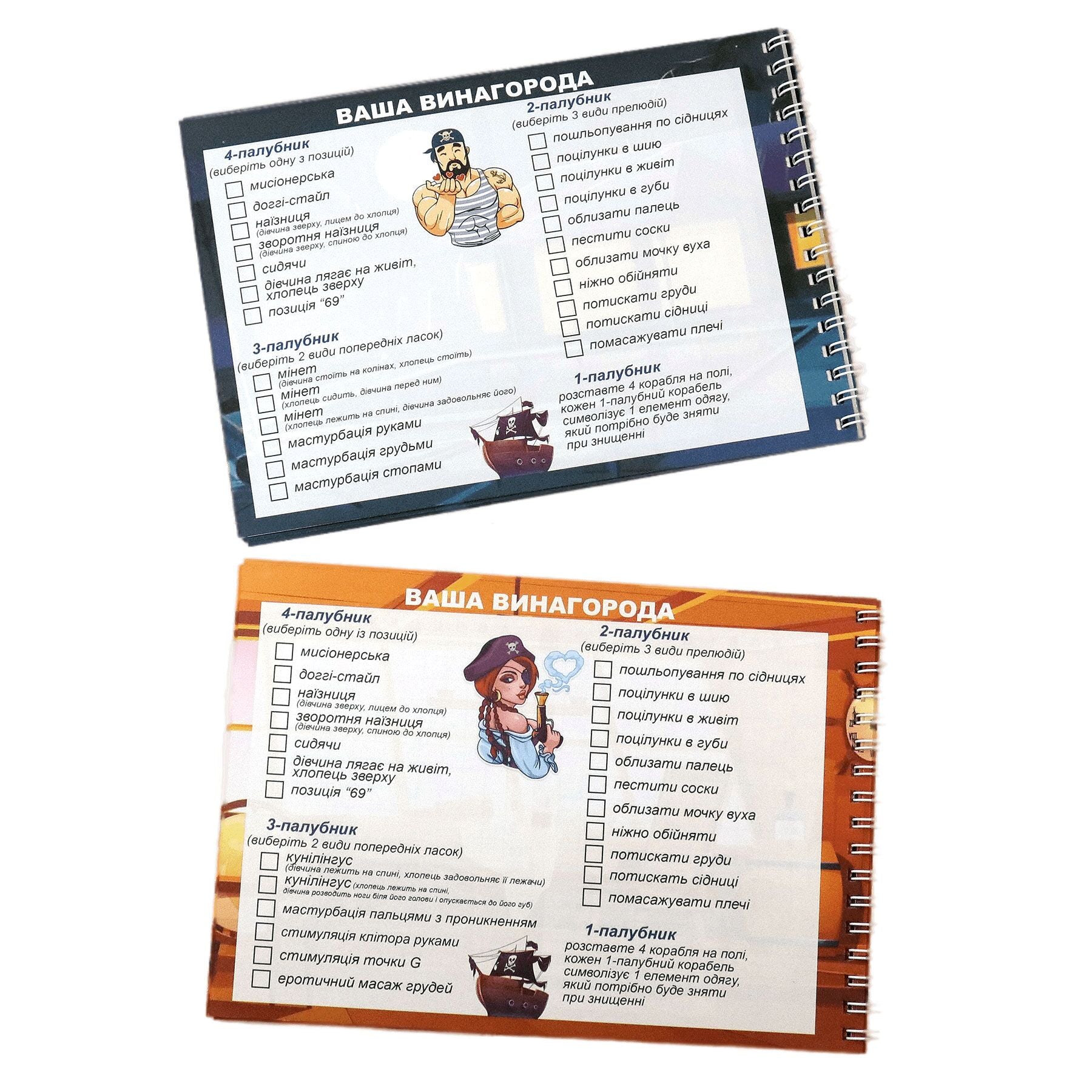 Ви коли-небудь грали в морський бій? Ну звичайно, адже це розвага здатна захопити не на одну годину! А якщо це буде морський бій для дорослих, де за кожен підбитий корабель передбачена еротична винагорода? Пропонуємо купити еротичну гру "Морський бій. Постільна версія", яка не тільки допоможе весело провести час, а й зблизить вас з партнером і допоможе краще пізнати сексуальні забаганки один одного. Вам знадобиться тільки ручка і трохи сміливості — і вперед, на абордаж!