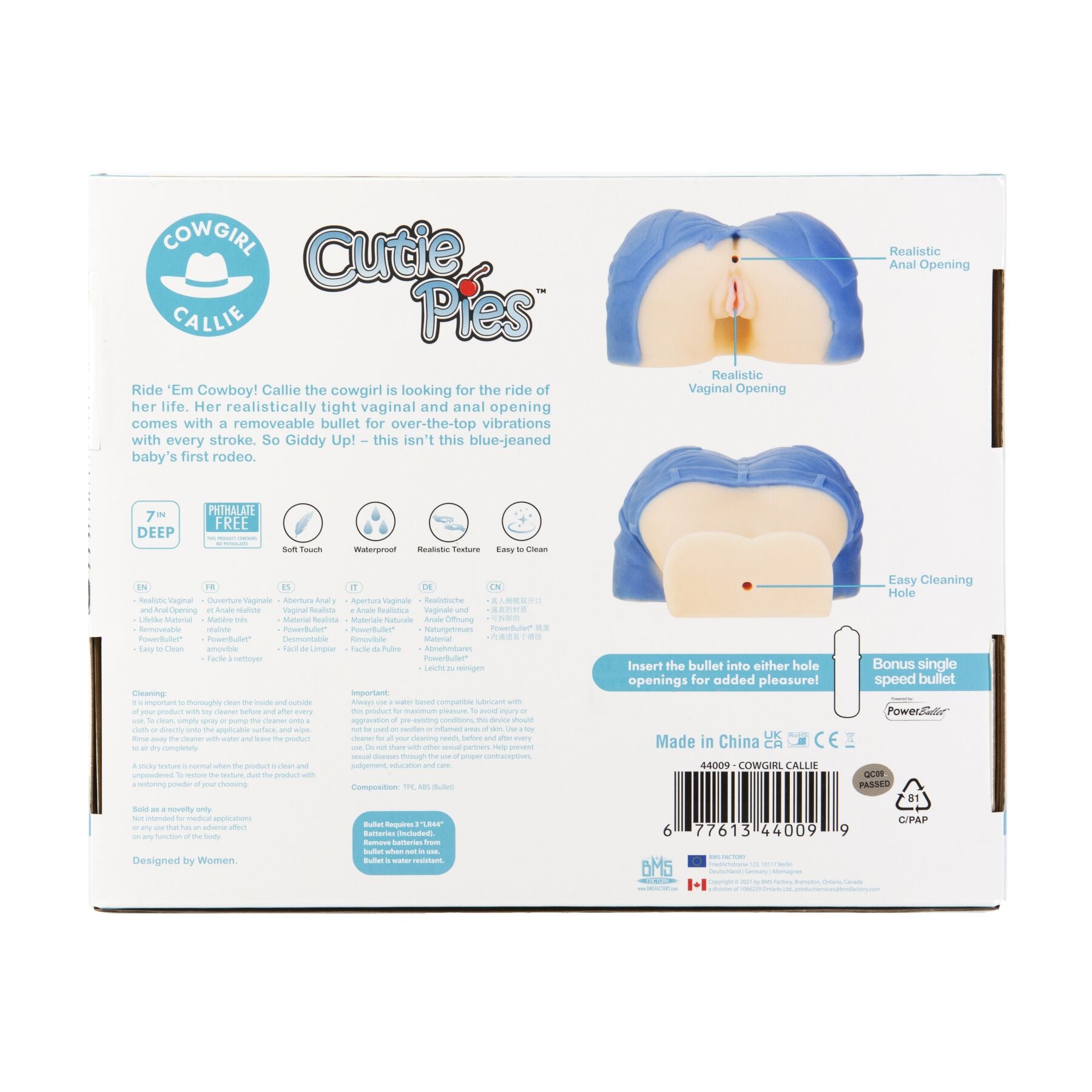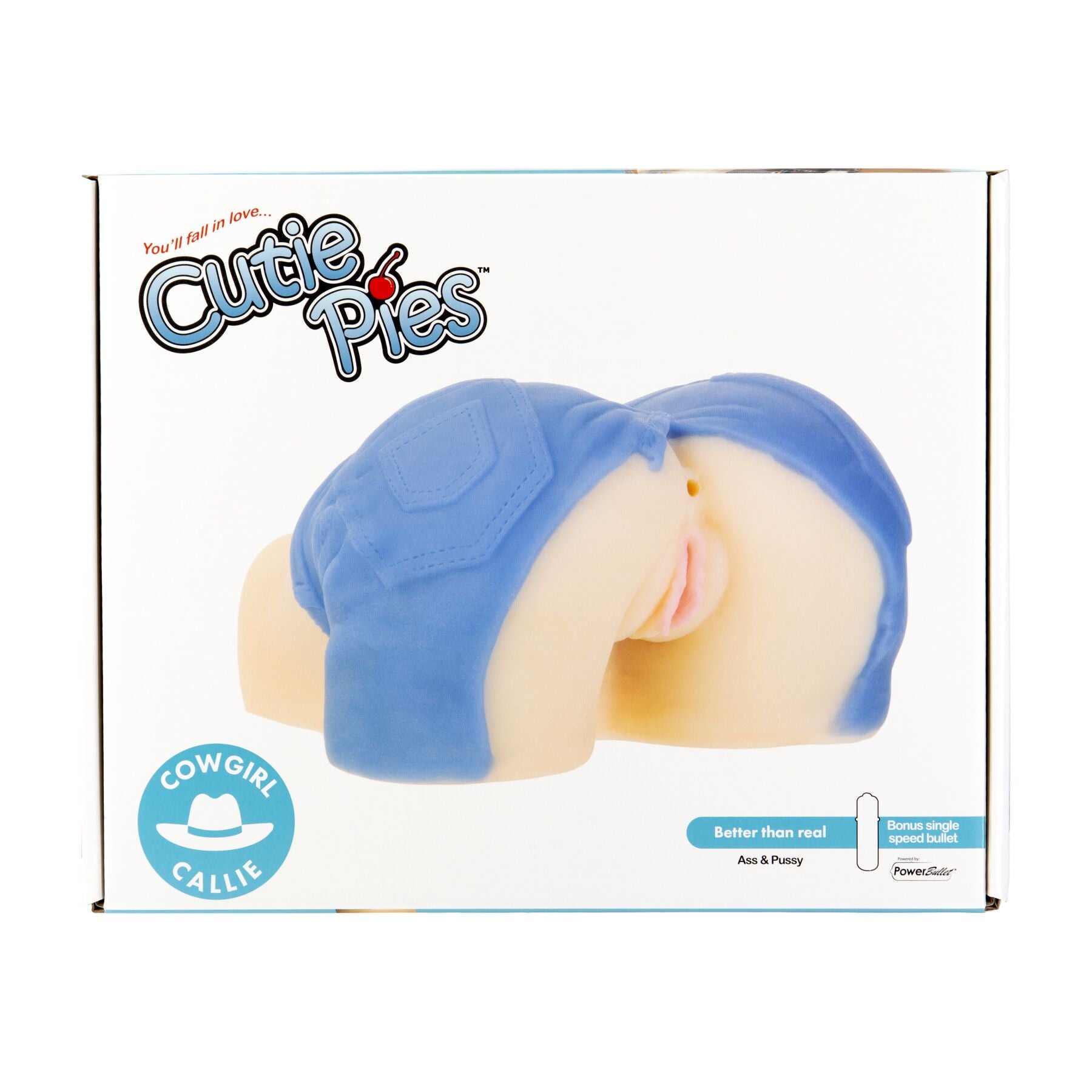 Купіть мастурбатор-вагіну та попку Cutie Pies Cowgirl Callie Vagina & Ass Masturbator та отримайте шикарну попу пастушки в коротких джинсових шортах. Дайте волю своїй уяві та вирушайте з Келлі в запаморочливі перегони на шляху до шаленого приголомшливого оргазму.