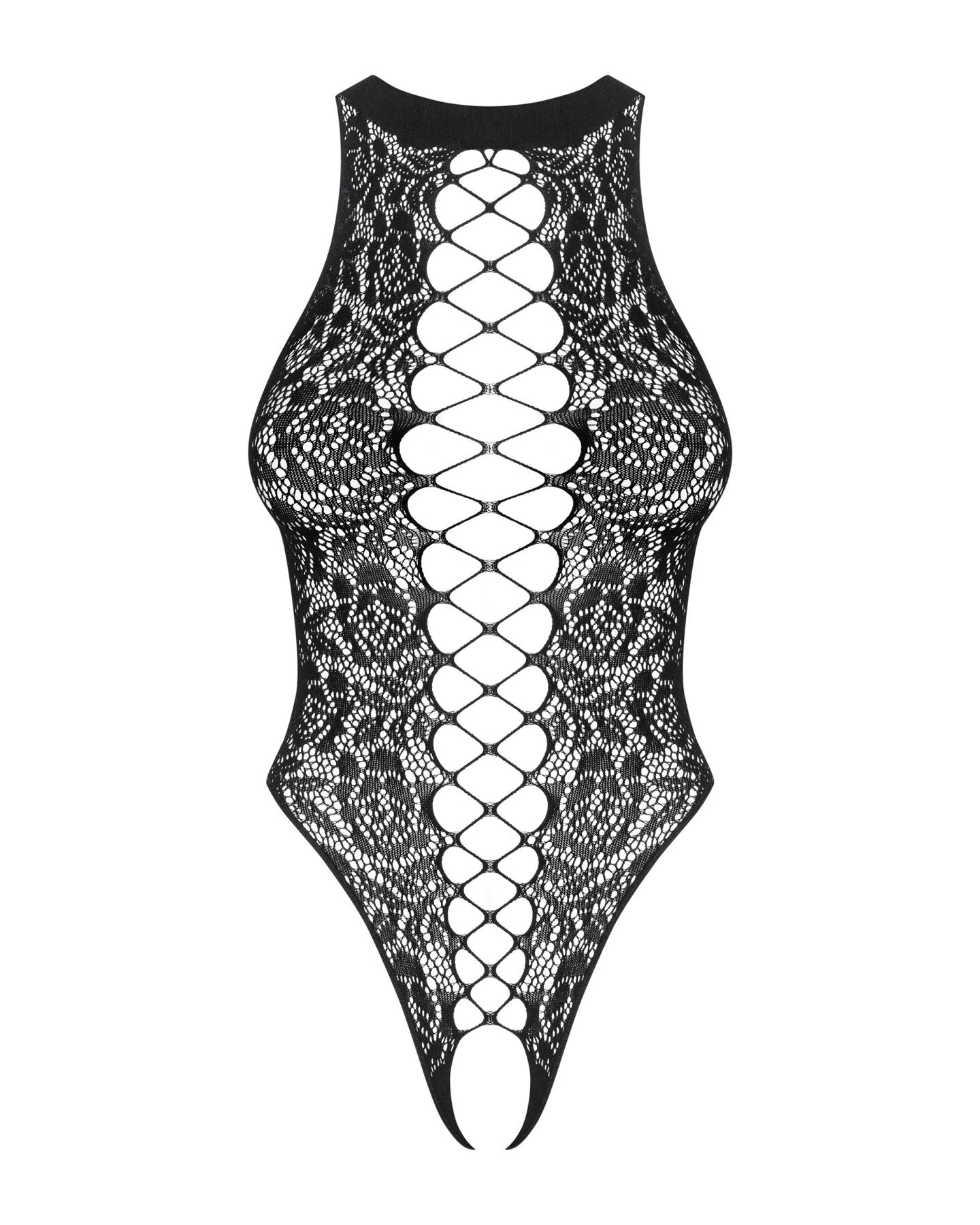 Ажурний бодістокінг із ефектом шнурівки Obsessive B129 teddy black S/M/L, чорний, з доступом
