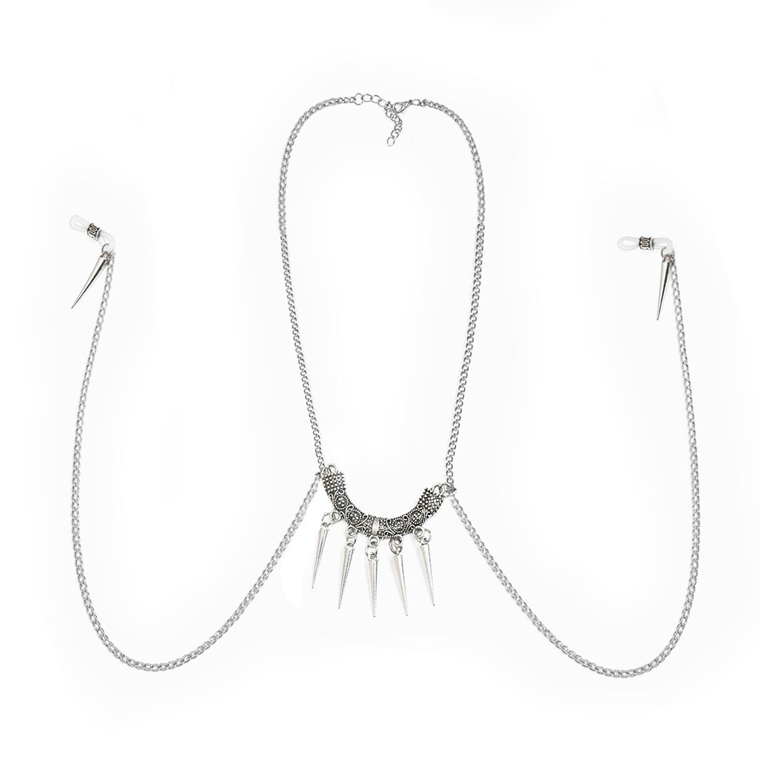Виготовлена з якісних матеріалів, прикраса тримається на грудях завдяки м’яким силіконовим петелькам, які практично не відчуваються на тілі. Петельки надягаються на соски й затягуються бігунками. Довгі тонкі ланцюжки від сосків йдуть за шию, з’єднуючись у зоні декольте прикрасою із п’ятьма підвісками-шипами. Такі ж два шипи є на силіконових петлях.