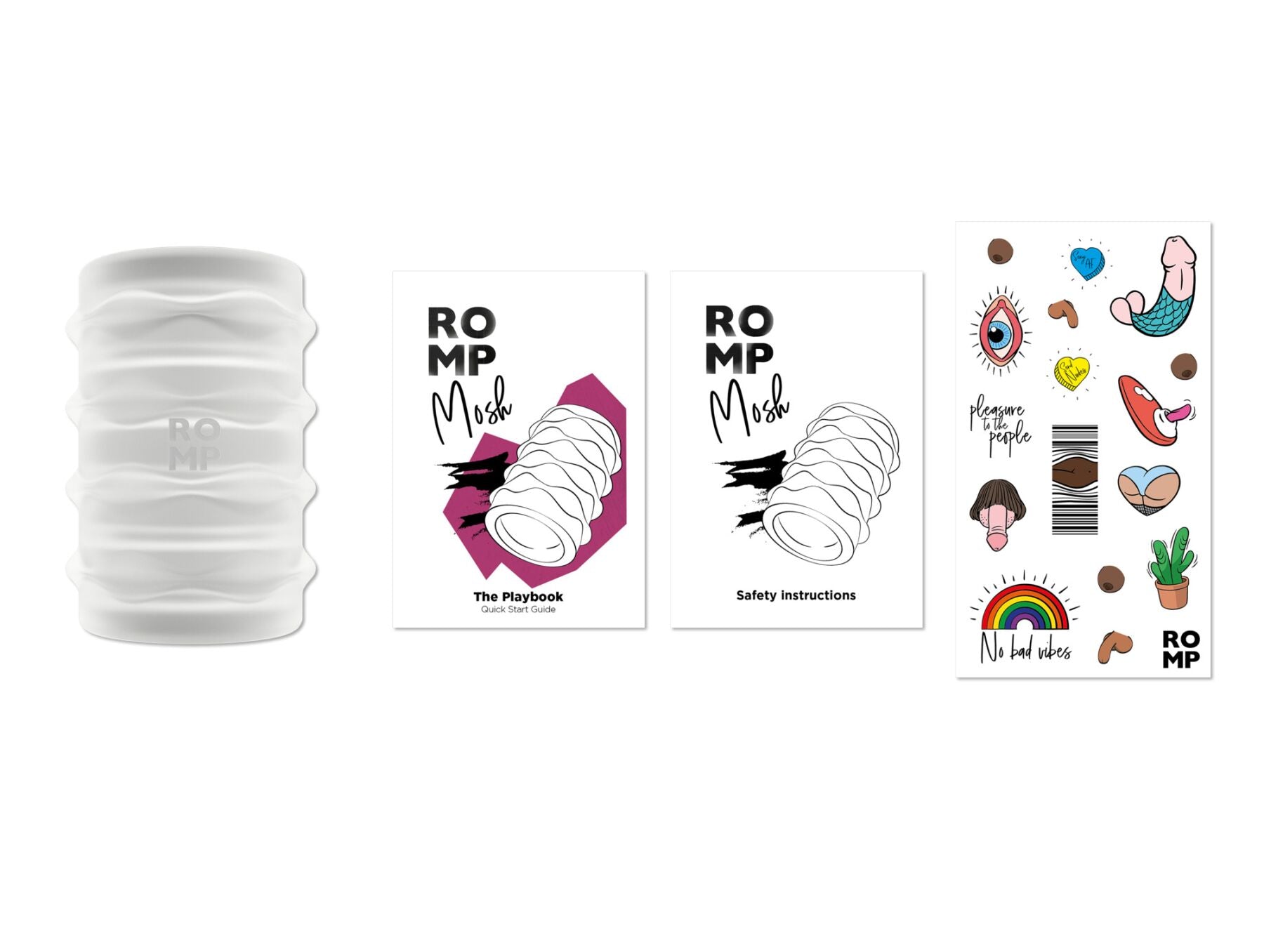 Мініатюрний м’який мастурбатор Romp Mosh стане надійним компаньйоном у будь-якій подорожі, прекрасно доповнивши ваші ігри соло або ж в парі. Використовуйте змазку на водній основі та експериментуйте з різним рельєфом — словом, грайте, як вам захочеться! Після використання рекомендується промити його теплою водою, обробити засобом для догляду за інтимними іграшками та висушити.
