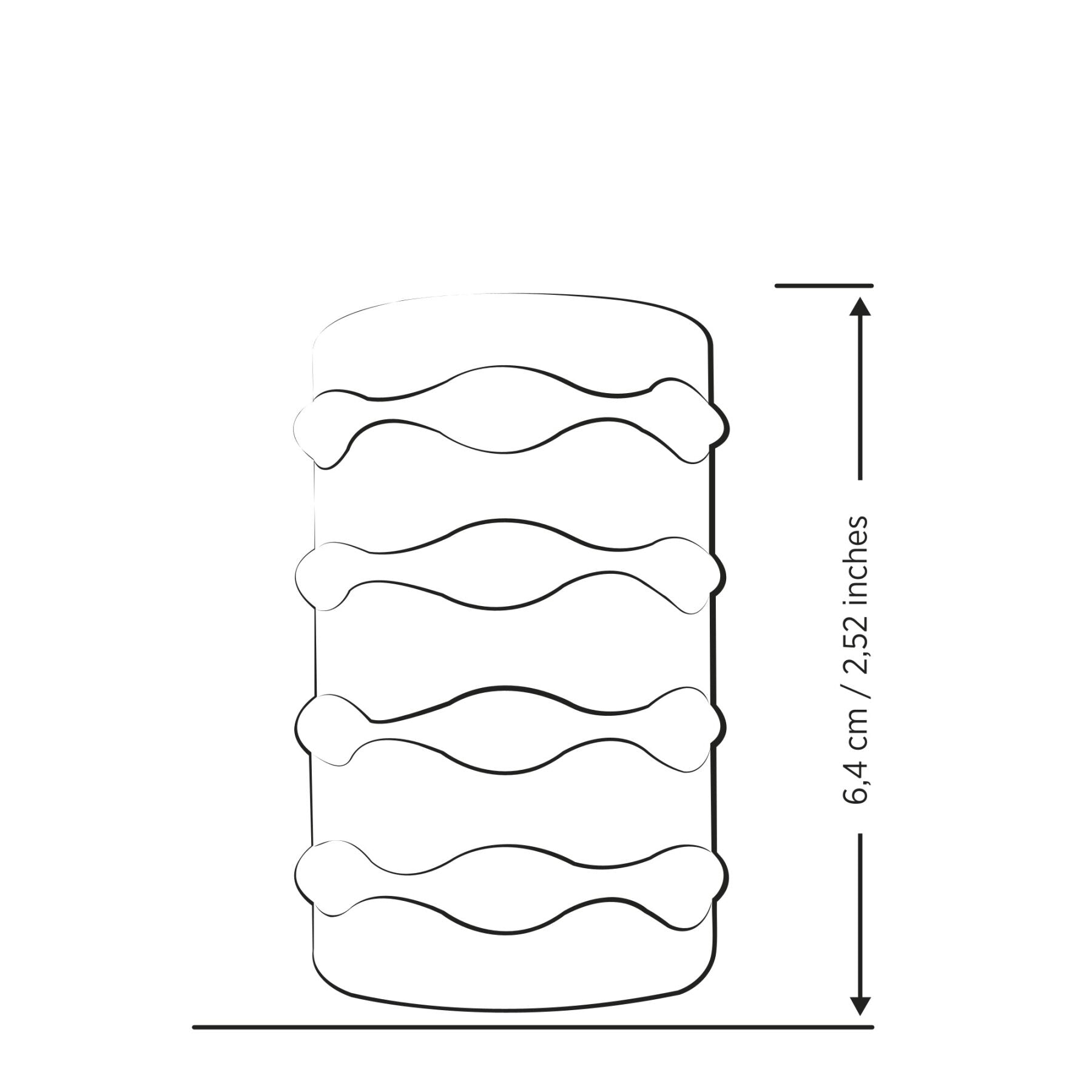 Розміри: загальна довжина 6,4 см (розтягується), зовнішній діаметр 3,9 см, внутрішній діаметр 2,5 см (розтягується).