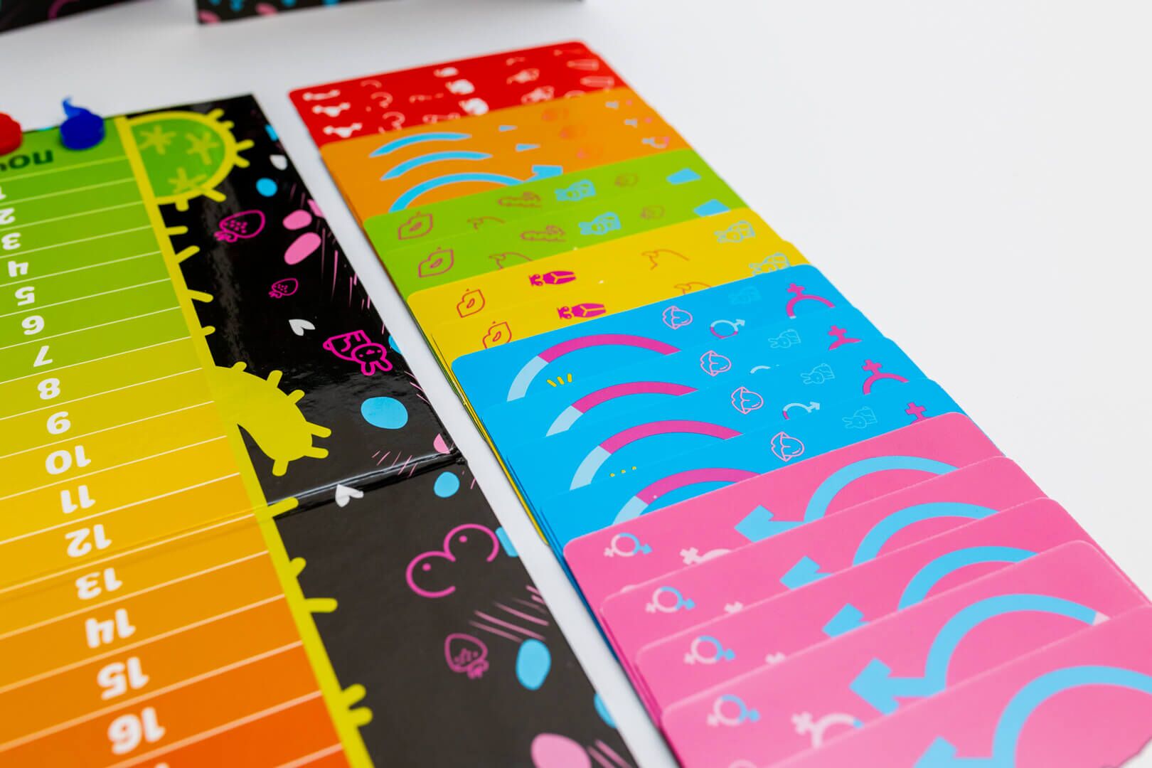 У комплекті: 176 карток 6-ти різних типів, які в сумі несуть більш ніж 600 різних слів і фраз, один особливий кубик, 4 фішки, ігрове поле, правила.