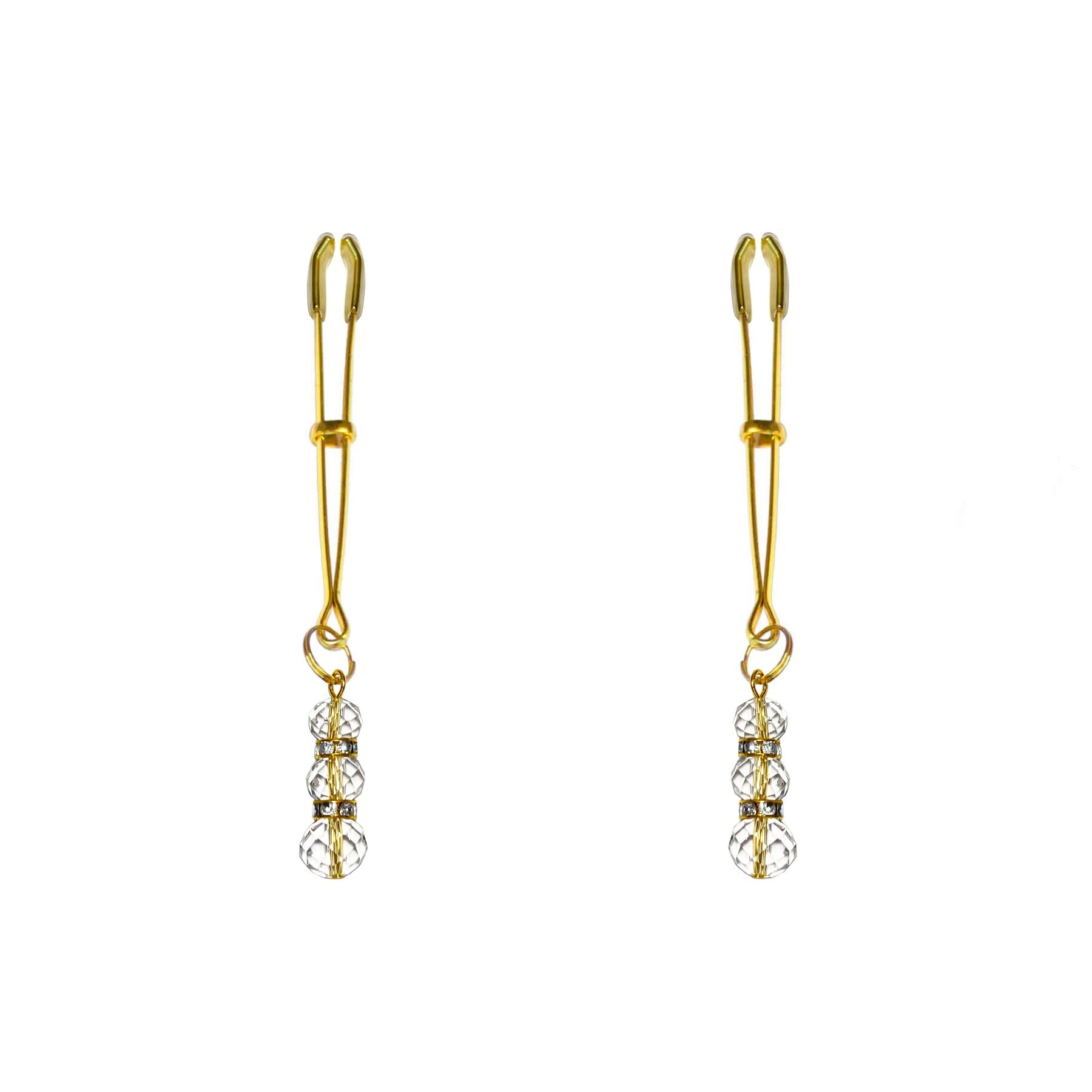 Тонкі затискачі для сосків з підвіскою Feral Feelings - Thin nipple clamps, золото/прозорий