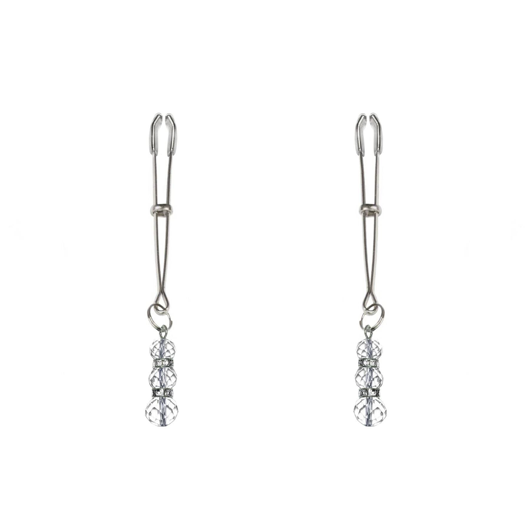 Тонкі затискачі для сосків з підвіскою Feral Feelings - Thin nipple clamps, серебро/прозорий